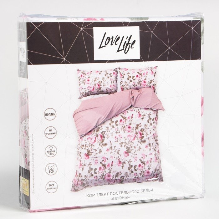 КПБ евро LoveLife «Пионы»: пододеяльник 200*217см+наволочка 70*70см-2шт, поплин, 125 г/м²
