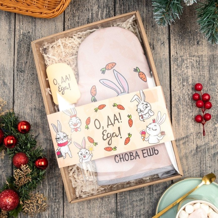 Набор подарочный Доляна «Ешь, молись» МИКС: варежка-прихватка, лопатка силикон