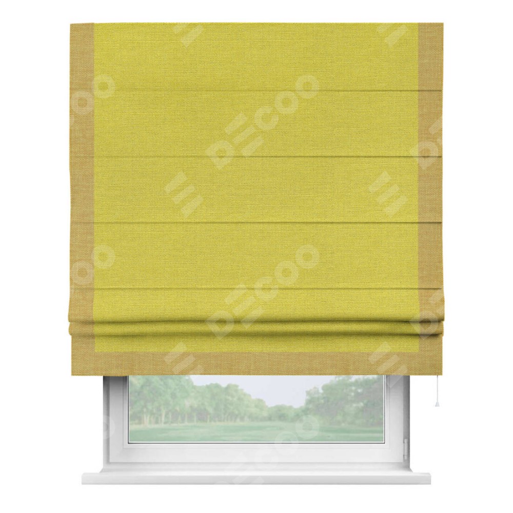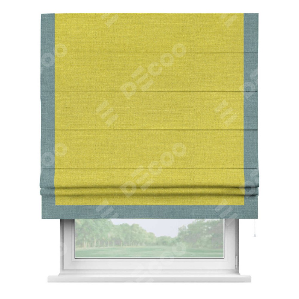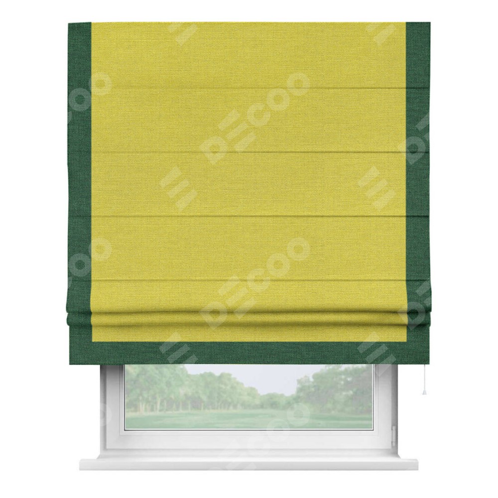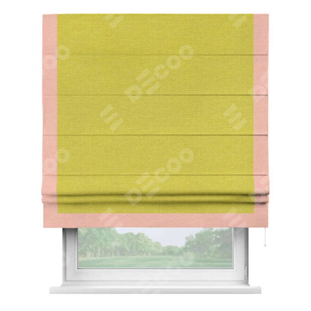 Римская штора «Кортин» с кантом Виктория, для проема, ткань лён салатовый