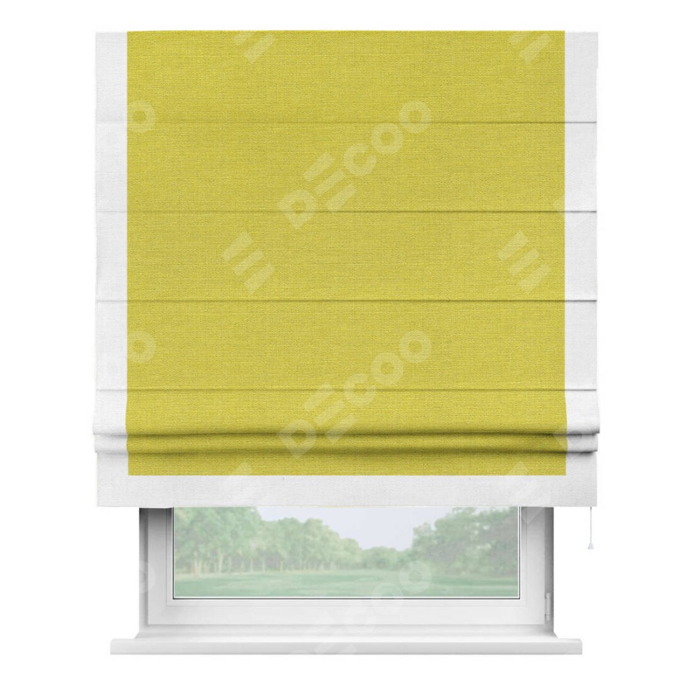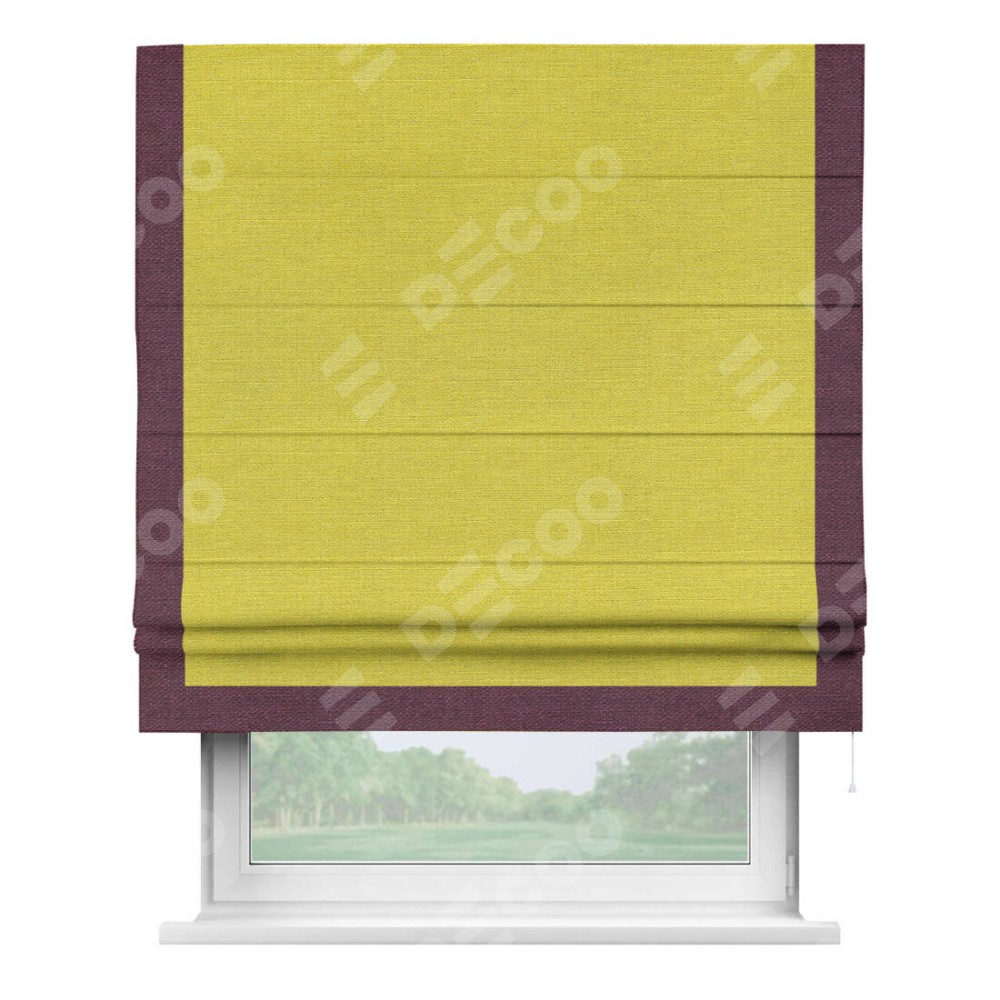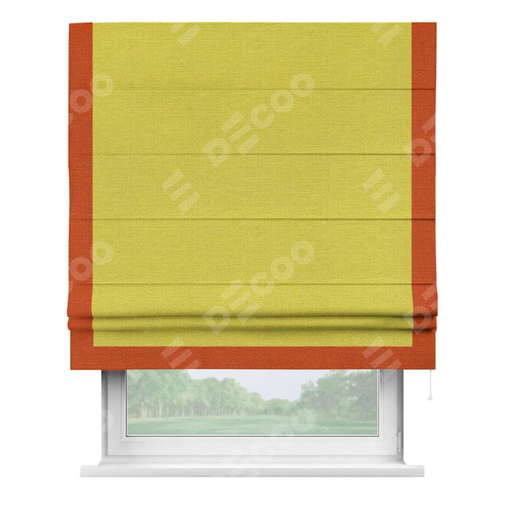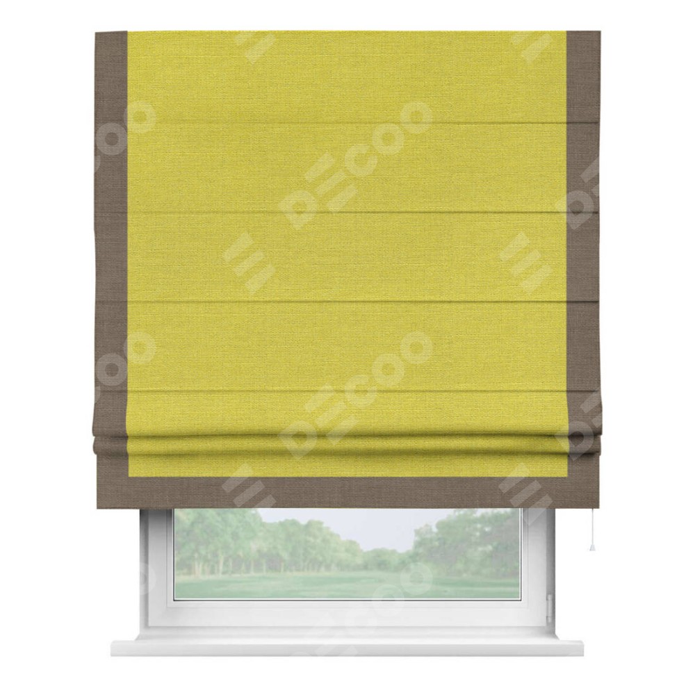 Римская штора «Кортин» с кантом Виктория, для проема, ткань лён салатовый