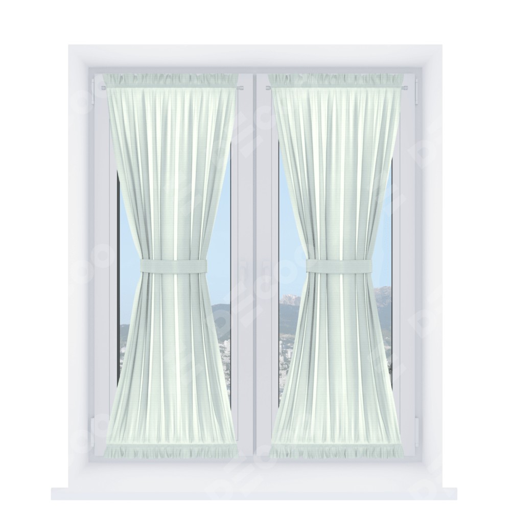 Штора «Песочные часы» производителя «Cortin», используется для створок окон и дверей, пошита из ткани блэкаут однотонный молочный, артикул ткани 88282.