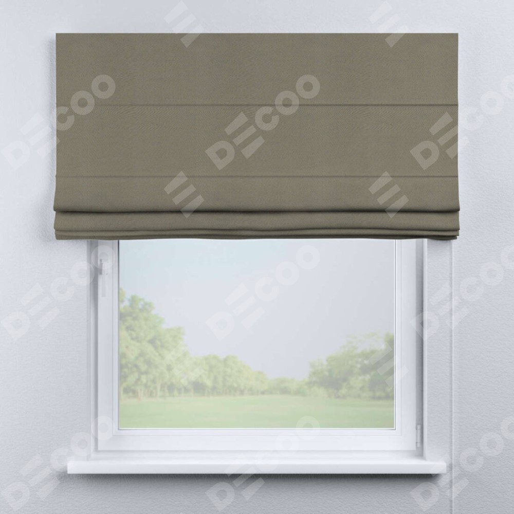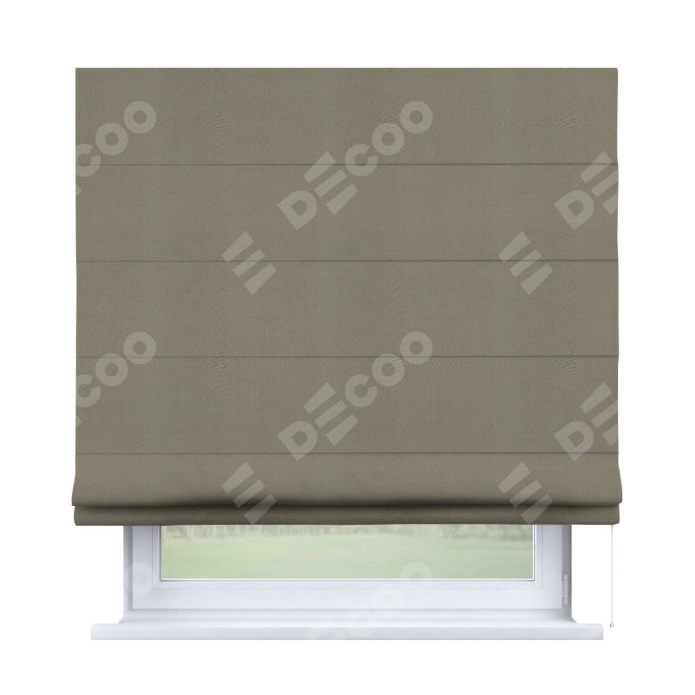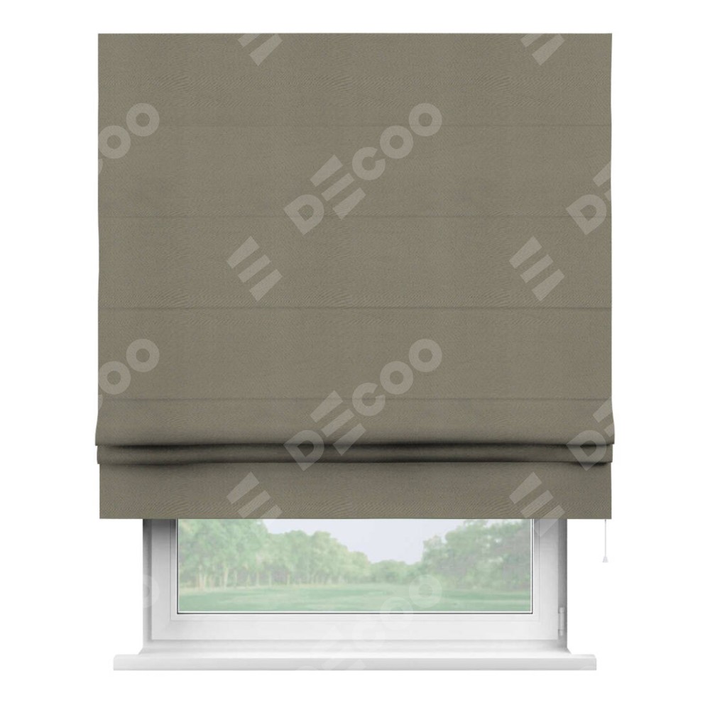 Римская штора производителя «Cortin», используется для проёма, пошита из ткани блэкаут однотонный бежево-серый, артикул ткани 00004. Имеет универсальный механизм и подходит для монтажа: на потолок, на стену и в нишу.