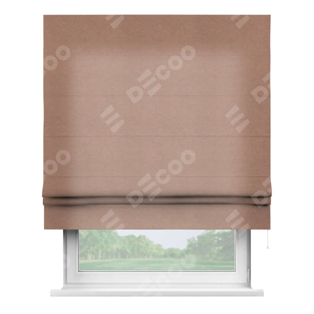 Римская штора производителя «Cortin», используется для проёма, пошита из ткани вельвет брусничный джем, артикул ткани 17750. Имеет универсальный механизм и подходит для монтажа: на потолок, на стену и в нишу.