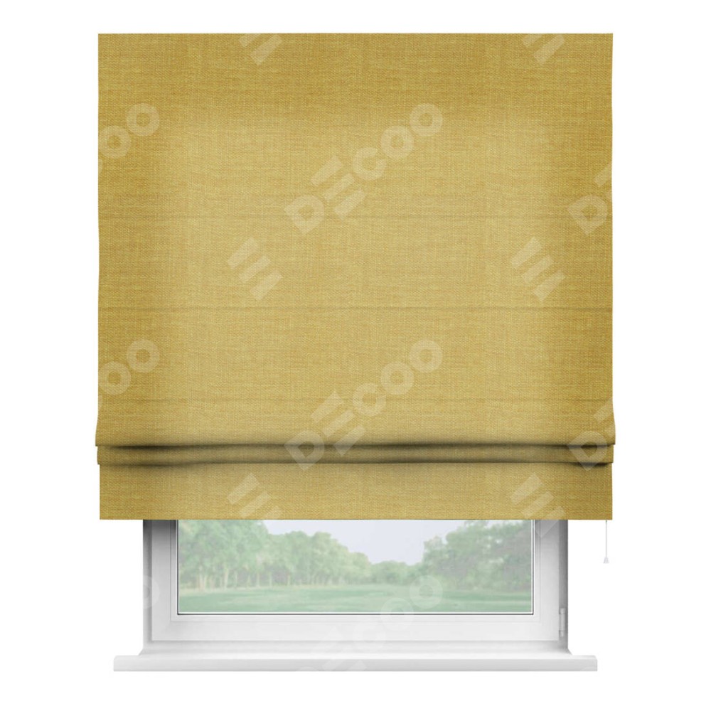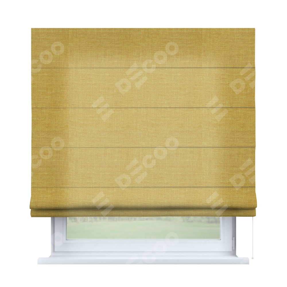 Римская штора производителя «Cortin», используется для проёма, пошита из ткани лён горчичный, артикул ткани 74740. Имеет универсальный механизм и подходит для монтажа: на потолок, на стену и в нишу.