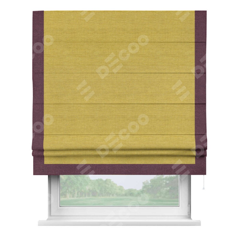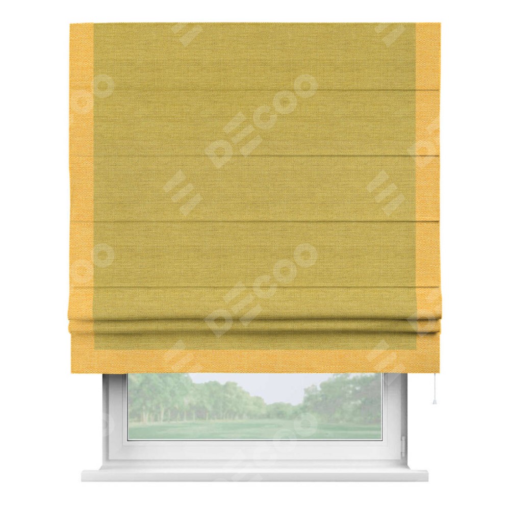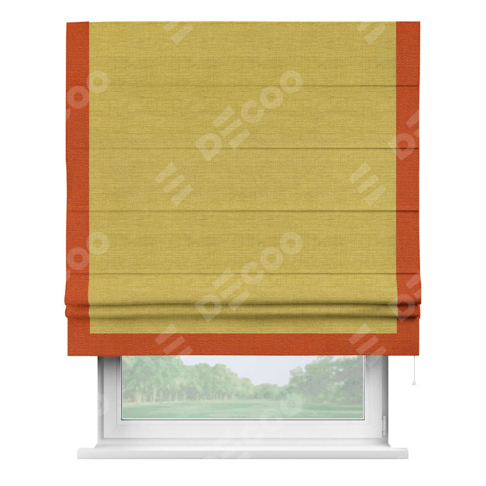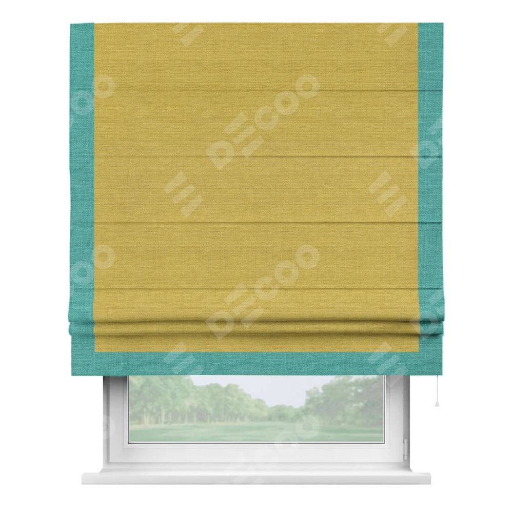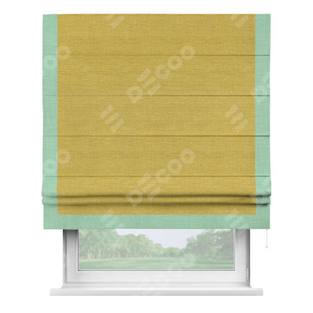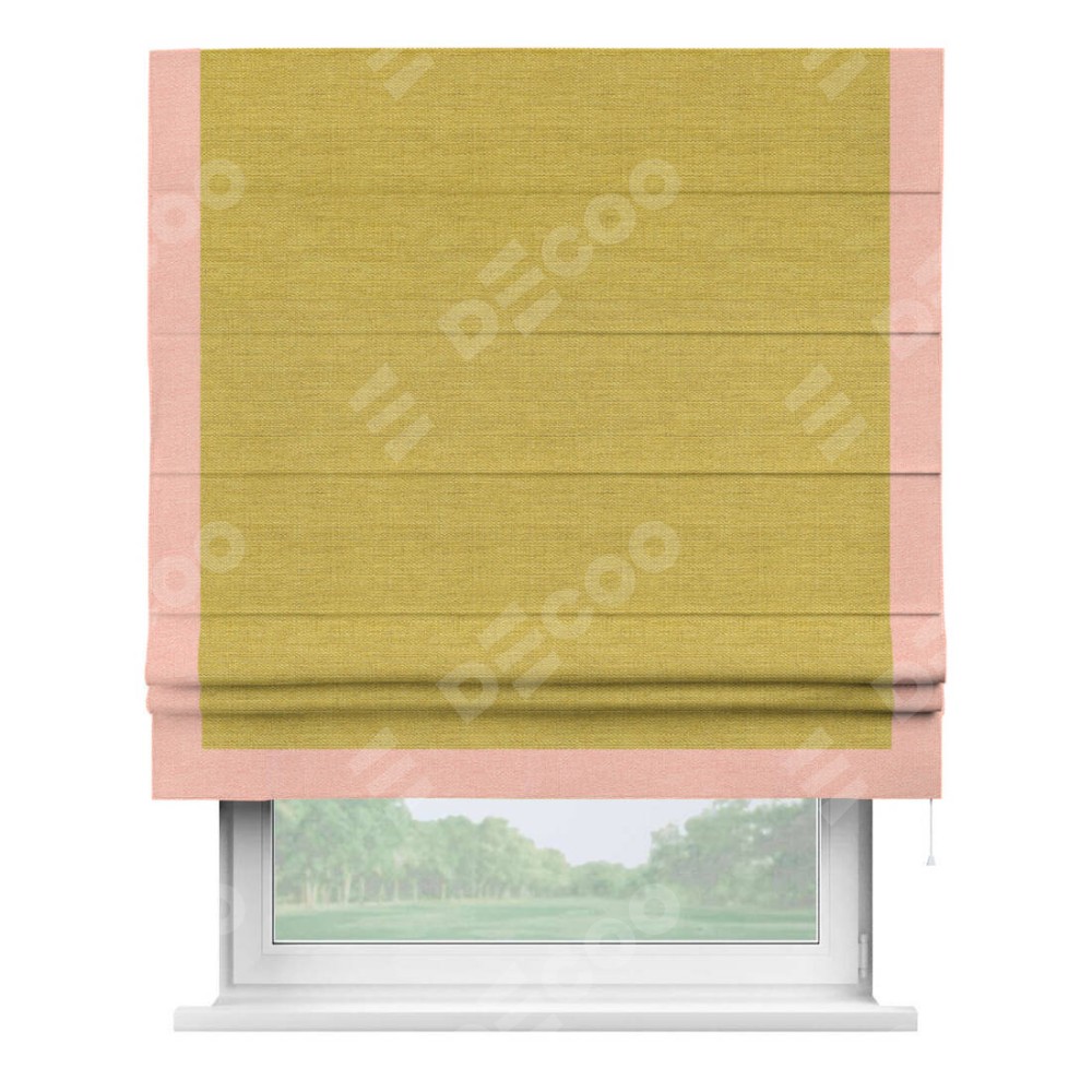 Римская штора «Кортин» с кантом Виктория, для проема, ткань лён светло-салатовый