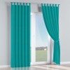 Комплект прямых штор, от производителя «Cortin», пошиты из ткани блэкаут однотонный бирюзовый, артикул ткани 88297. Данная модель пошита на петлях, комплектуется на выбор круглым карнизом и подходит для монтажа на стену или потолок. Прямые шторы на петлях шьются по стандарту с коэффициентом 1/2 (на 100 см. ширины проёма 200 см. ширины ткани), отличительным преимуществом данной модели является простой способ монтажа. Достаточно повесить ее на трубу и штора готова!