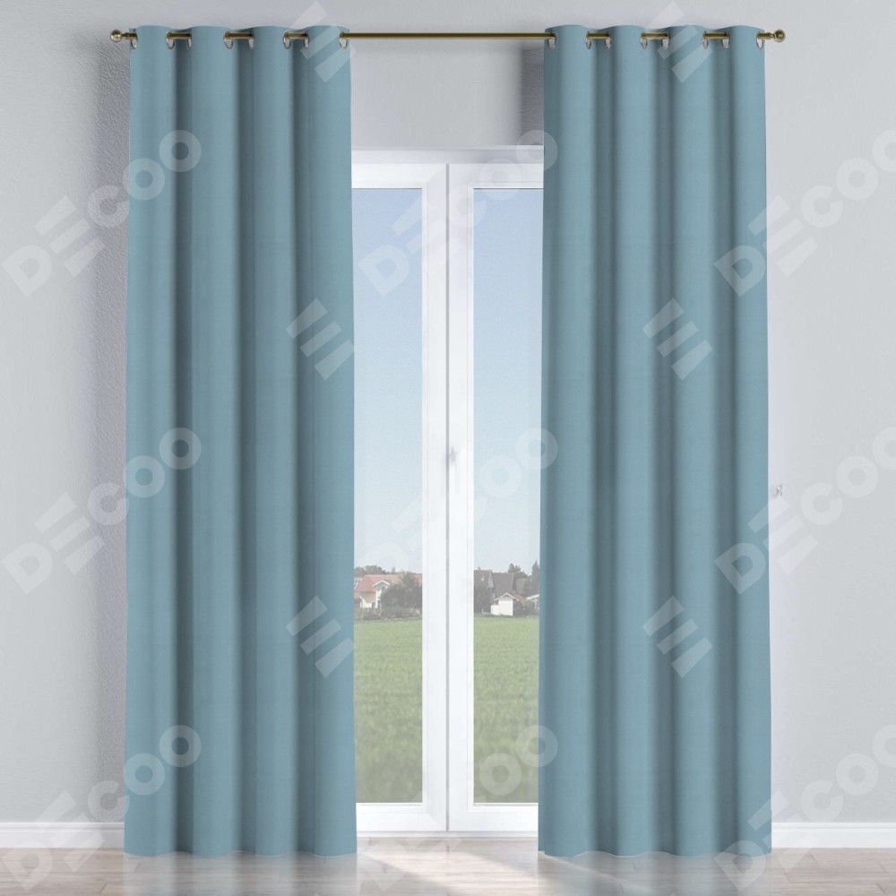 Комплект прямых штор, от производителя «Cortin», пошиты из ткани блэкаут однотонный серо-голубой, артикул ткани 29327. Данная модель пошита на люверсах, комплектуется на выбор круглым карнизом и подходит для монтажа на стену или потолок. Прямые шторы на люверсах шьются по стандарту с коэффициентом 1/2 (на 100 см. ширины проёма 200 см. ширины ткани), отличительным преимуществом данной модели является простой способ монтажа. Достаточно повесить ее на трубу и штора готова!