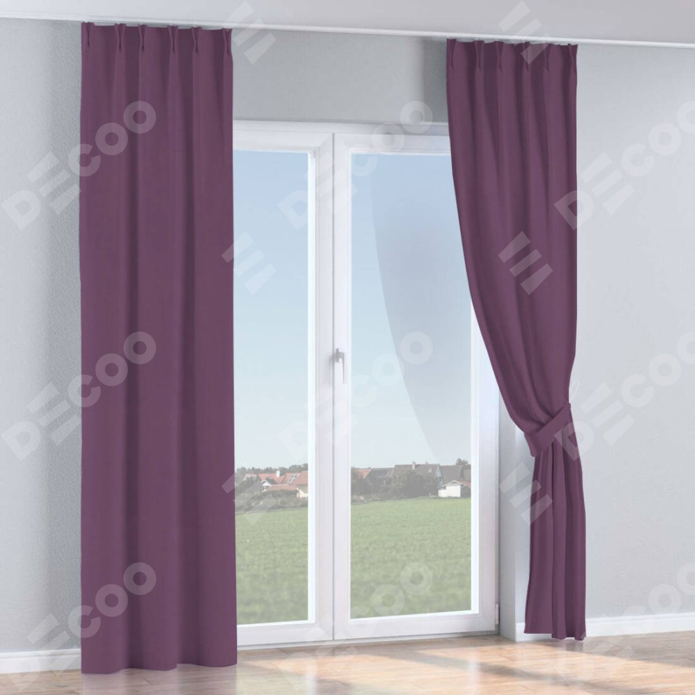 Комплект прямых штор, от производителя «Cortin», пошиты из ткани блэкаут однотонный фуксия, артикул ткани 88303. С изнаночной стороны в верхней части штор пристрачивается шторная лента с декоративными складками «Кустик». Для создания элегантных складок прямые шторы шьются по стандарту с коэффициентом 1:2 (на 100 см. ширины проёма 200 см. ширины ткани).