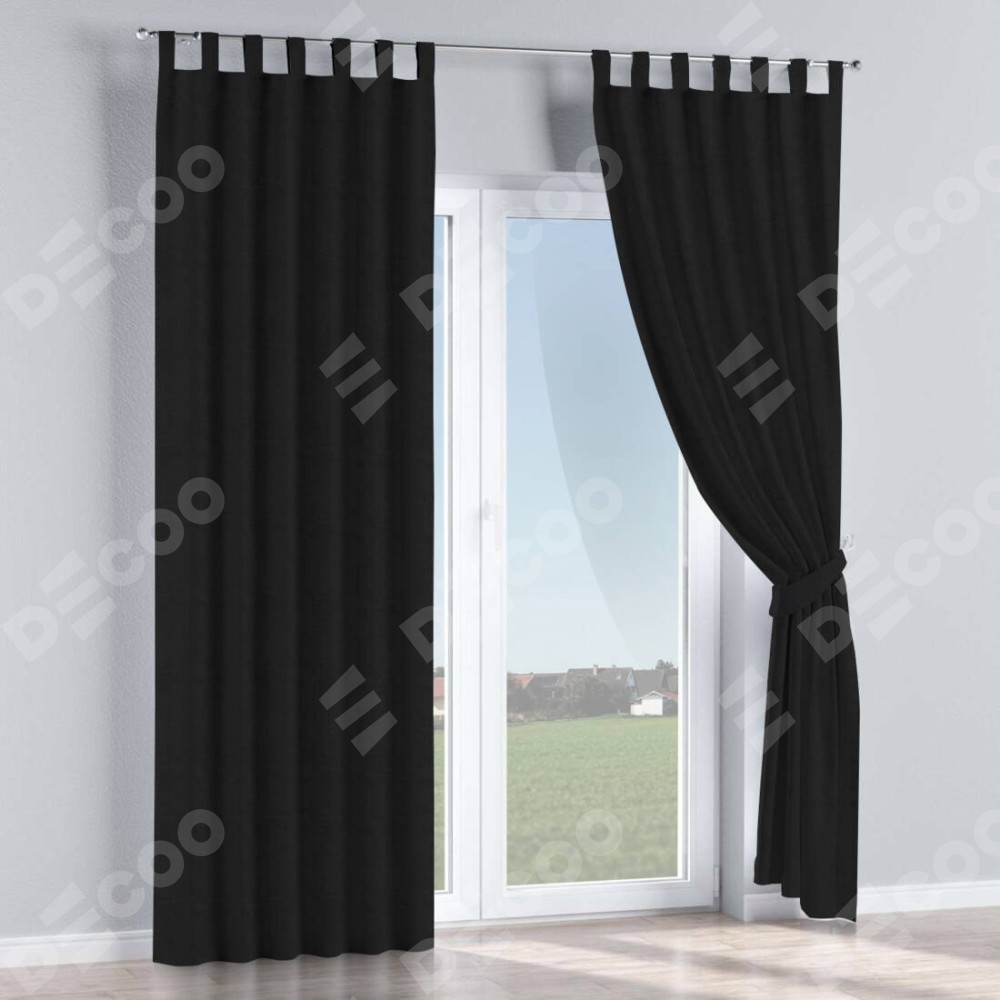 Комплект прямых штор, от производителя «Cortin», пошиты из ткани блэкаут однотонный черный, артикул ткани 79904. Данная модель пошита на петлях, комплектуется на выбор круглым карнизом и подходит для монтажа на стену или потолок. Прямые шторы на петлях шьются по стандарту с коэффициентом 1/2 (на 100 см. ширины проёма 200 см. ширины ткани), отличительным преимуществом данной модели является простой способ монтажа. Достаточно повесить ее на трубу и штора готова!