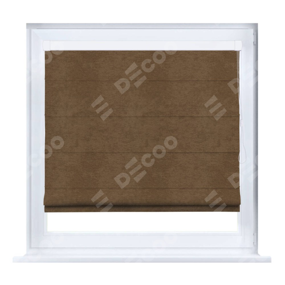 Римская штора производителя «Cortin», устанавливается на створку окна, пошита из ткани софт однотонный бронзовый, артикул 33099. Штора шьётся по индивидуальным размерам, для данного типа римской шторы возможная ширина от 35 до 150 см., высота до 250 см.