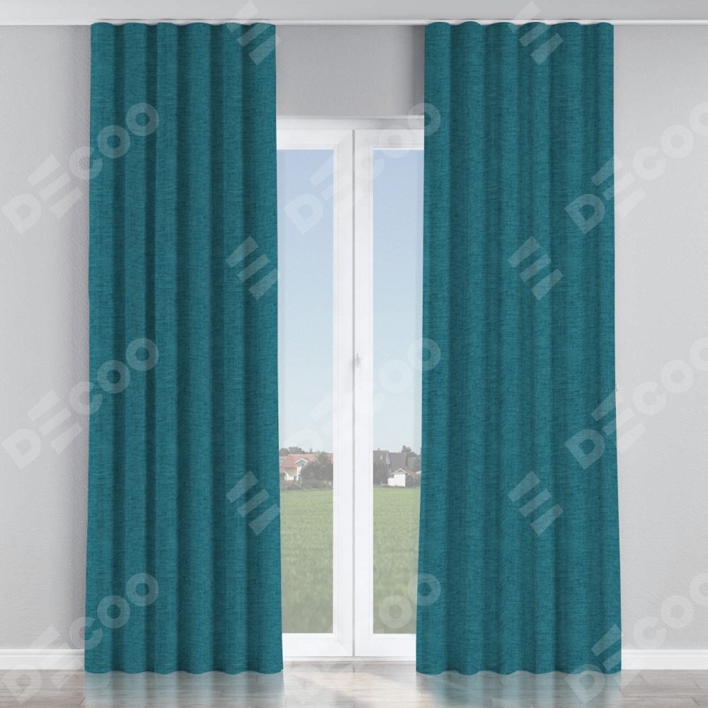 Комплект прямых штор, от производителя «Cortin», пошиты из ткани рогожка димаут синий, артикул ткани 80422. С изнаночной стороны в верхней части штор пристрачивается шторная лента с декоративными складками «Волна». Для создания элегантных складок прямые шторы шьются по стандарту с коэффициентом 1:2 (на 100 см. ширины проёма 200 см. ширины ткани).