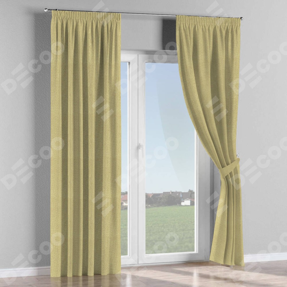 Комплект прямых штор, от производителя «Cortin», пошиты из ткани лён димаут песочный, артикул ткани 16239. С изнаночной стороны в верхней части штор пристрачивается шторная лента с декоративными складками «Карандаш». Для создания элегантных складок прямые шторы шьются по стандарту с коэффициентом 1:2 (на 100 см. ширины проёма 200 см. ширины ткани).