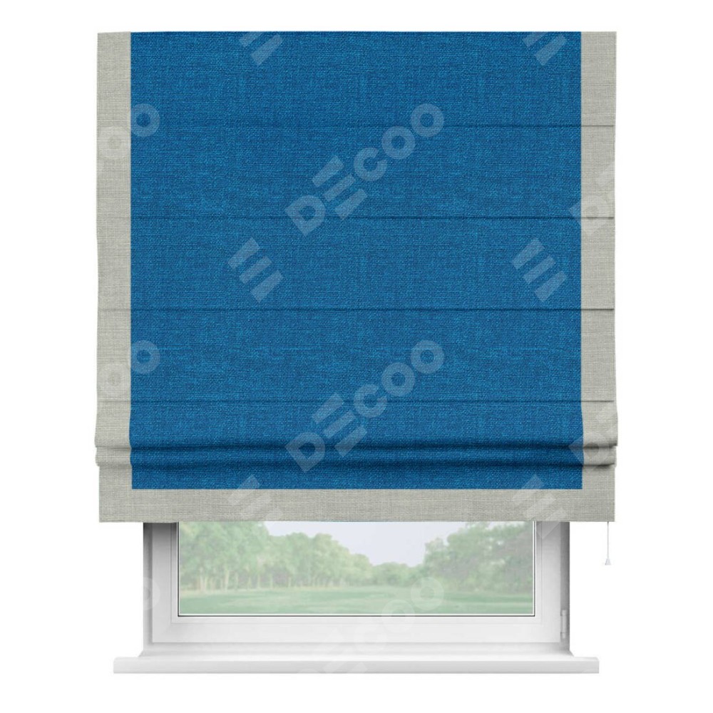 Римская штора «Кортин» с кантом Виктория, для проема, ткань лён синий