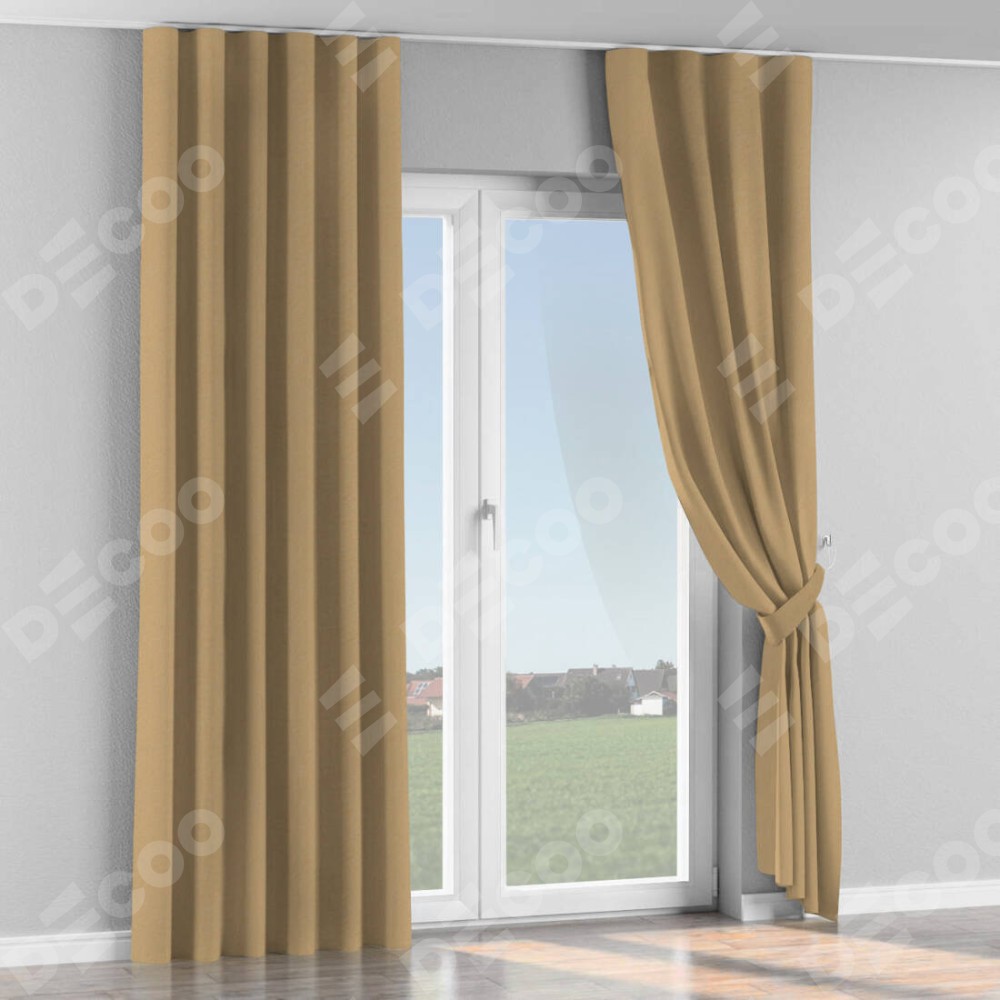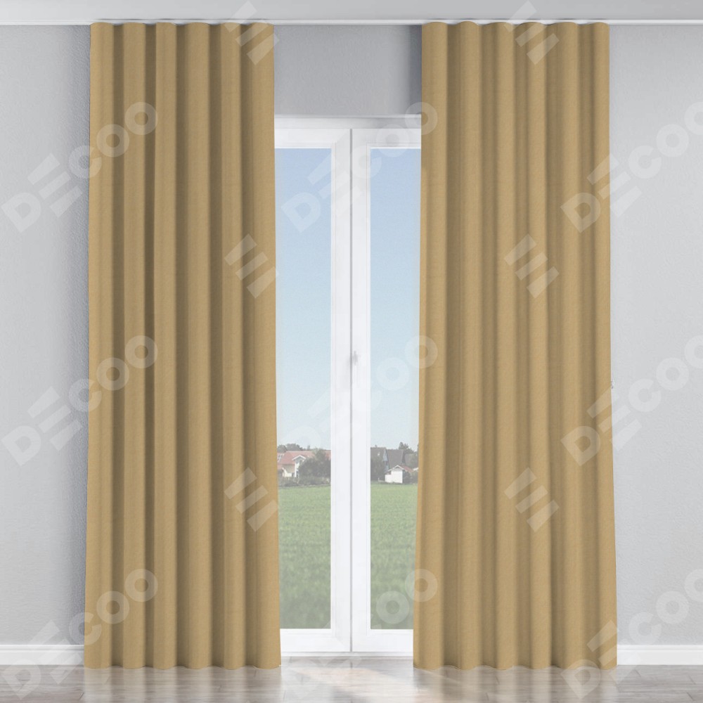 Комплект прямых штор, от производителя «Cortin», пошиты из ткани лён димаут тёмно-бежевый, артикул ткани 83037. С изнаночной стороны в верхней части штор пристрачивается шторная лента с декоративными складками «Волна». Для создания элегантных складок прямые шторы шьются по стандарту с коэффициентом 1:2 (на 100 см. ширины проёма 200 см. ширины ткани).