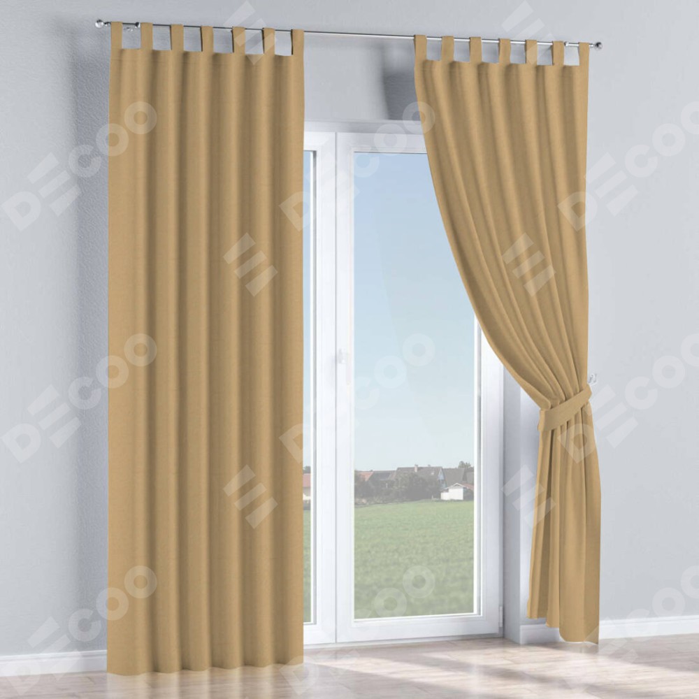 Комплект прямых штор, от производителя «Cortin», пошиты из ткани лён димаут тёмно-бежевый, артикул ткани 83037. Данная модель пошита на петлях, комплектуется на выбор круглым карнизом и подходит для монтажа на стену или потолок. Прямые шторы на петлях шьются по стандарту с коэффициентом 1/2 (на 100 см. ширины проёма 200 см. ширины ткани), отличительным преимуществом данной модели является простой способ монтажа. Достаточно повесить ее на трубу и штора готова!