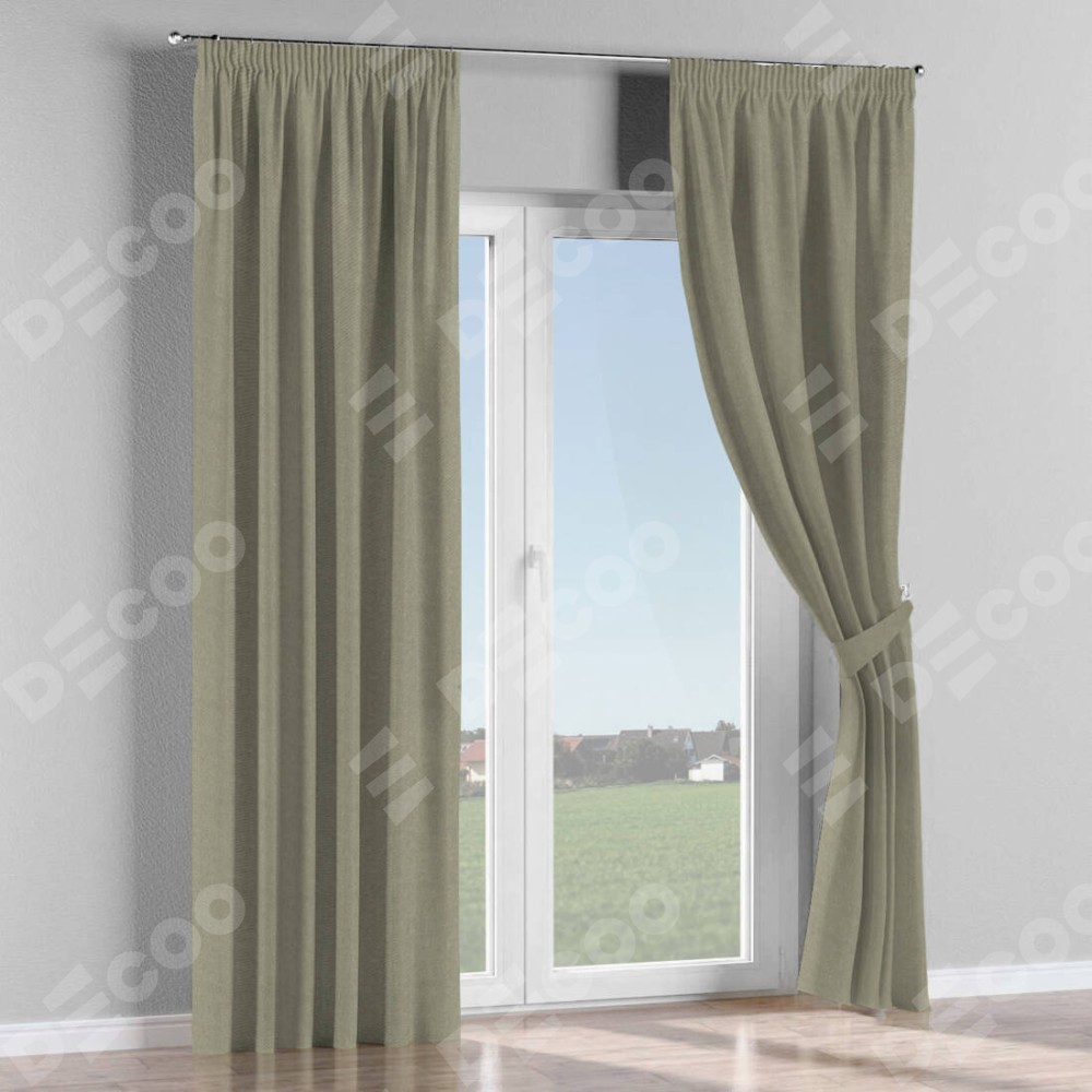 Комплект прямых штор, от производителя «Cortin», пошиты из ткани твид кофейный, артикул ткани 26412. С изнаночной стороны в верхней части штор пристрачивается шторная лента с декоративными складками «Карандаш». Для создания элегантных складок прямые шторы шьются по стандарту с коэффициентом 1:2 (на 100 см. ширины проёма 200 см. ширины ткани).