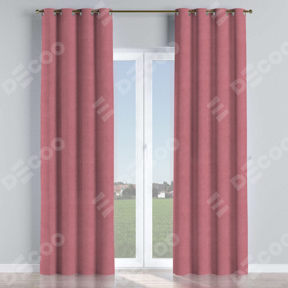 Комплект прямых штор, от производителя «Cortin», пошиты из ткани вельвет брусника, артикул ткани 85550. Данная модель пошита на люверсах, комплектуется на выбор круглым карнизом и подходит для монтажа на стену или потолок. Прямые шторы на люверсах шьются по стандарту с коэффициентом 1/2 (на 100 см. ширины проёма 200 см. ширины ткани), отличительным преимуществом данной модели является простой способ монтажа. Достаточно повесить ее на трубу и штора готова!