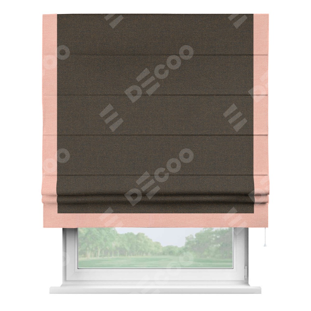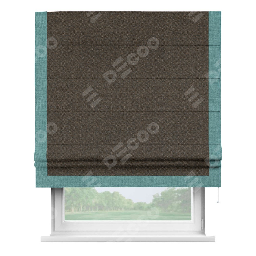 Римская штора производителя «Cortin», используется для проёма, пошита из ткани лён темно-коричневый, артикул 53444. Отделка шторы кантом «Виктория», ткань для канта используется из льна разной расцветки на выбор. Имеет универсальный механизм и подходит для монтажа: на потолок, на стену и в нишу.