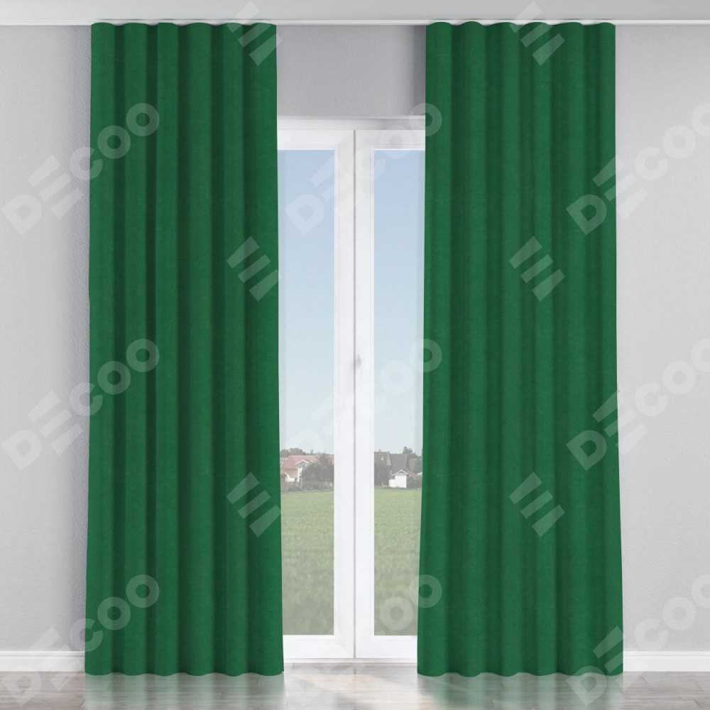 Комплект прямых штор, от производителя «Cortin», пошиты из ткани вельвет зелёный, артикул ткани 85546. С изнаночной стороны в верхней части штор пристрачивается шторная лента с декоративными складками «Волна». Для создания элегантных складок прямые шторы шьются по стандарту с коэффициентом 1:2 (на 100 см. ширины проёма 200 см. ширины ткани).