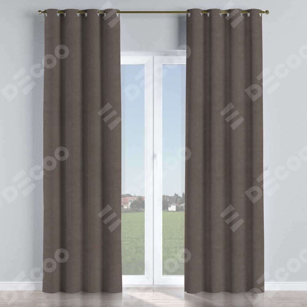 Комплект прямых штор, от производителя «Cortin», пошиты из ткани вельвет коричневый, артикул ткани 14135. Данная модель пошита на люверсах, комплектуется на выбор круглым карнизом и подходит для монтажа на стену или потолок. Прямые шторы на люверсах шьются по стандарту с коэффициентом 1/2 (на 100 см. ширины проёма 200 см. ширины ткани), отличительным преимуществом данной модели является простой способ монтажа. Достаточно повесить ее на трубу и штора готова!