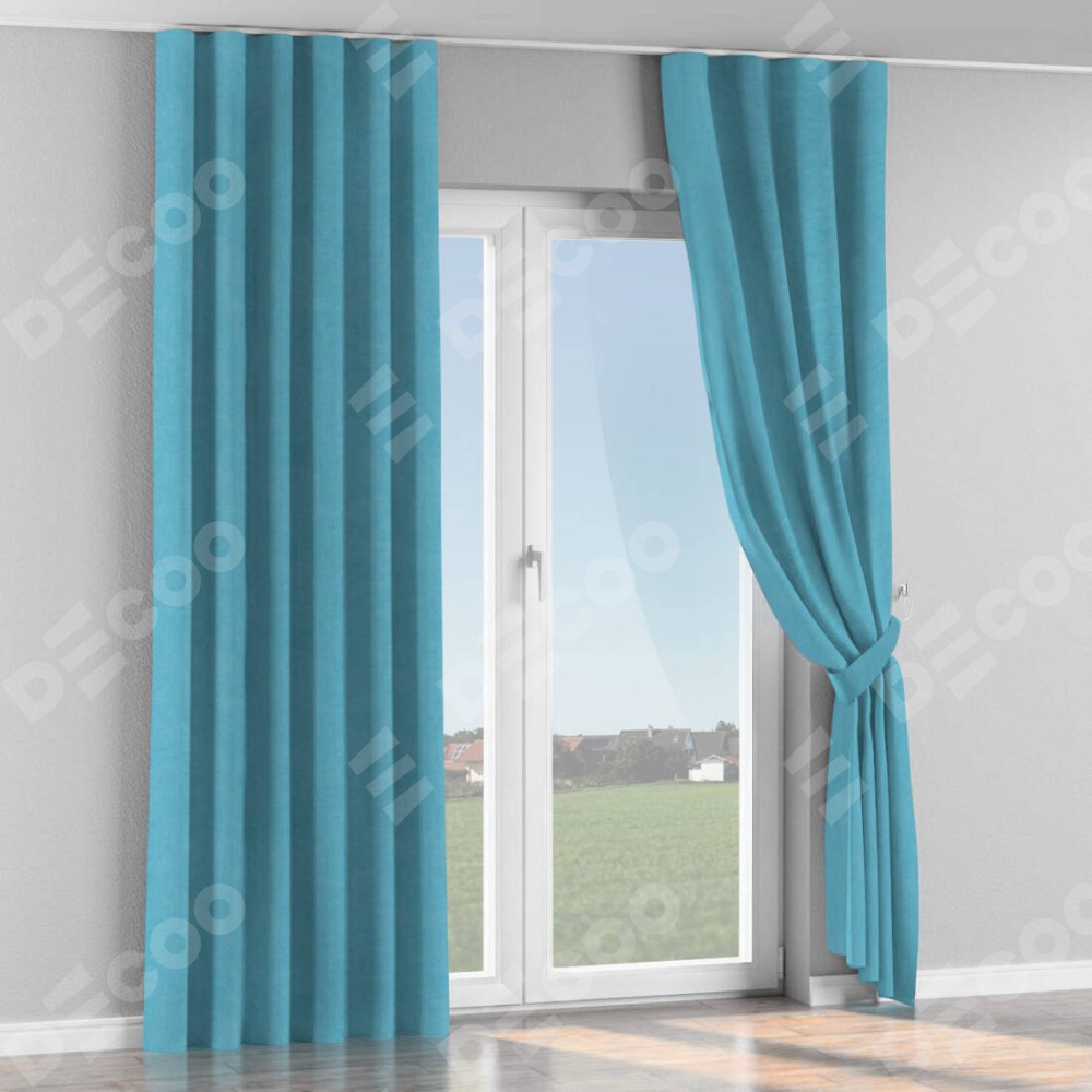 Комплект прямых штор, от производителя «Cortin», пошиты из ткани вельвет ментоловый, артикул ткани 10443. С изнаночной стороны в верхней части штор пристрачивается шторная лента с декоративными складками «Волна». Для создания элегантных складок прямые шторы шьются по стандарту с коэффициентом 1:2 (на 100 см. ширины проёма 200 см. ширины ткани).