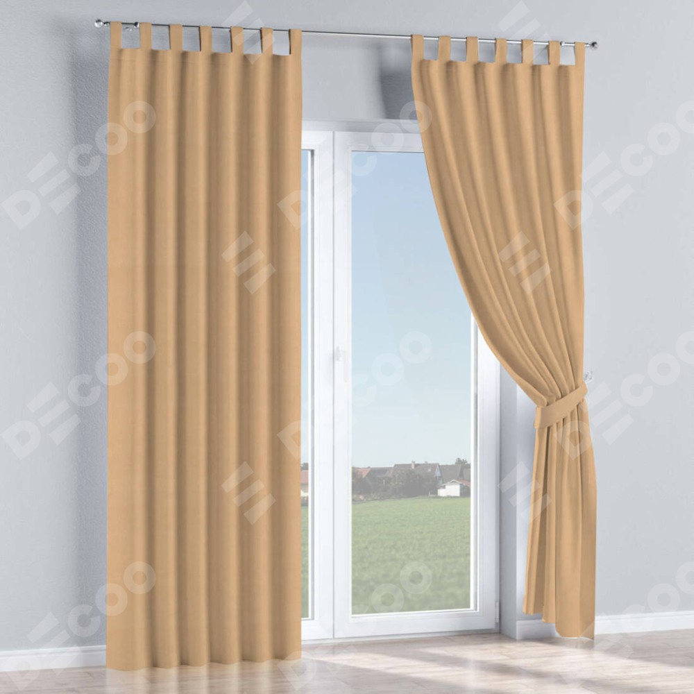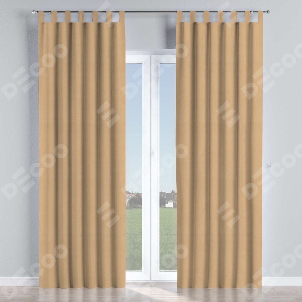 Комплект прямых штор, от производителя «Cortin», пошиты из ткани вельвет песочный, артикул ткани 17740. Данная модель пошита на петлях, комплектуется на выбор круглым карнизом и подходит для монтажа на стену или потолок. Прямые шторы на петлях шьются по стандарту с коэффициентом 1/2 (на 100 см. ширины проёма 200 см. ширины ткани), отличительным преимуществом данной модели является простой способ монтажа. Достаточно повесить ее на трубу и штора готова!