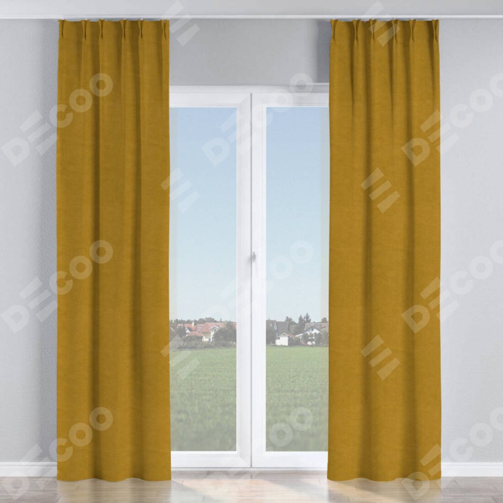 Комплект прямых штор, от производителя «Cortin», пошиты из ткани вельвет светло-коричневый, артикул ткани 4973. С изнаночной стороны в верхней части штор пристрачивается шторная лента с декоративными складками «Кустик». Для создания элегантных складок прямые шторы шьются по стандарту с коэффициентом 1:2 (на 100 см. ширины проёма 200 см. ширины ткани).