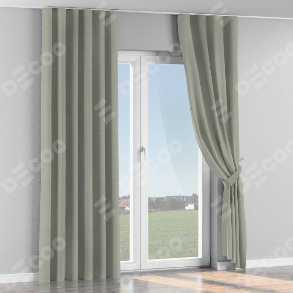 Комплект прямых штор, от производителя «Cortin», пошиты из ткани вельвет светло-серый, артикул ткани 30981. С изнаночной стороны в верхней части штор пристрачивается шторная лента с декоративными складками «Волна». Для создания элегантных складок прямые шторы шьются по стандарту с коэффициентом 1:2 (на 100 см. ширины проёма 200 см. ширины ткани).