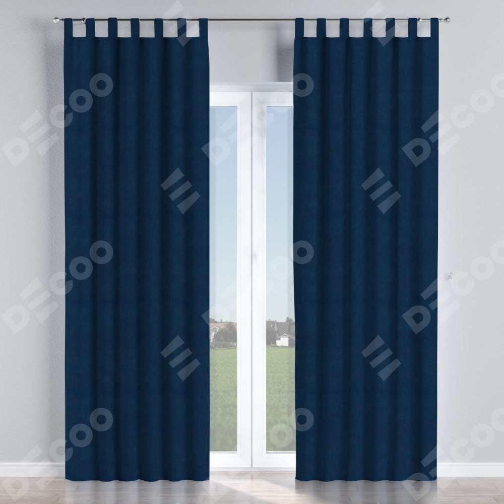 Комплект прямых штор, от производителя «Cortin», пошиты из ткани вельвет тёмно-синий, артикул ткани 14152. Данная модель пошита на петлях, комплектуется на выбор круглым карнизом и подходит для монтажа на стену или потолок. Прямые шторы на петлях шьются по стандарту с коэффициентом 1/2 (на 100 см. ширины проёма 200 см. ширины ткани), отличительным преимуществом данной модели является простой способ монтажа. Достаточно повесить ее на трубу и штора готова!