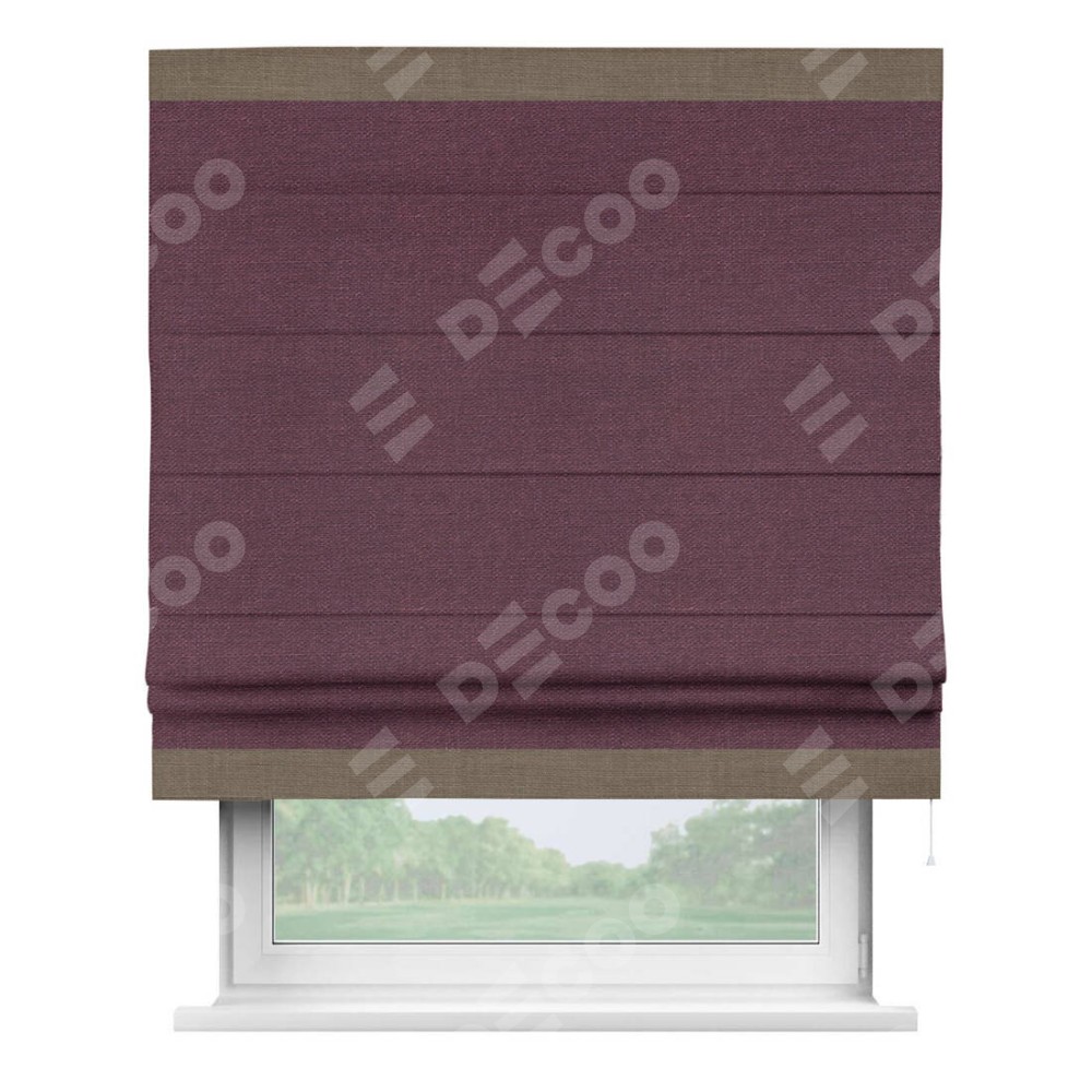 Римская штора «Кортин» с кантом Горизонт, для проема, ткань лён фиолетовый