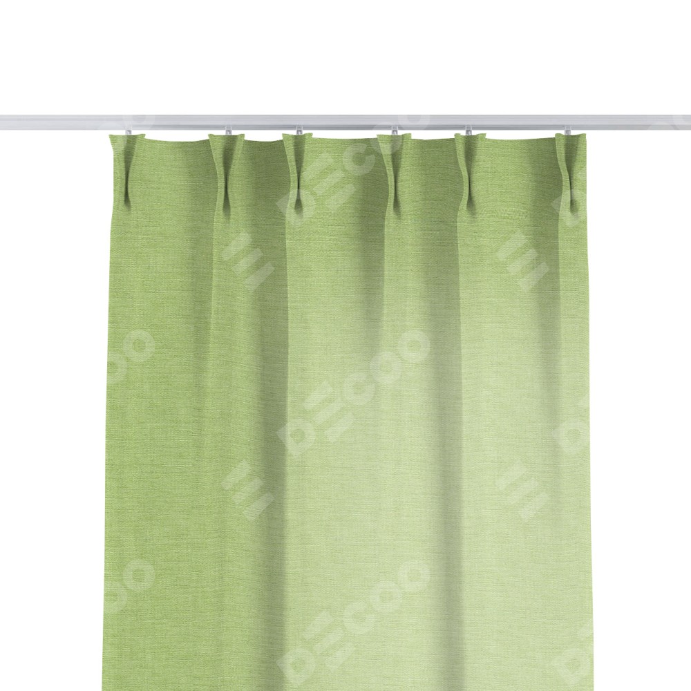 Комплект прямых штор, от производителя «Cortin», пошиты из ткани лён зелёный, артикул ткани 85906. С изнаночной стороны в верхней части штор пристрачивается шторная лента с декоративными складками «Кустик». Для создания элегантных складок прямые шторы шьются по стандарту с коэффициентом 1:2 (на 100 см. ширины проёма 200 см. ширины ткани).