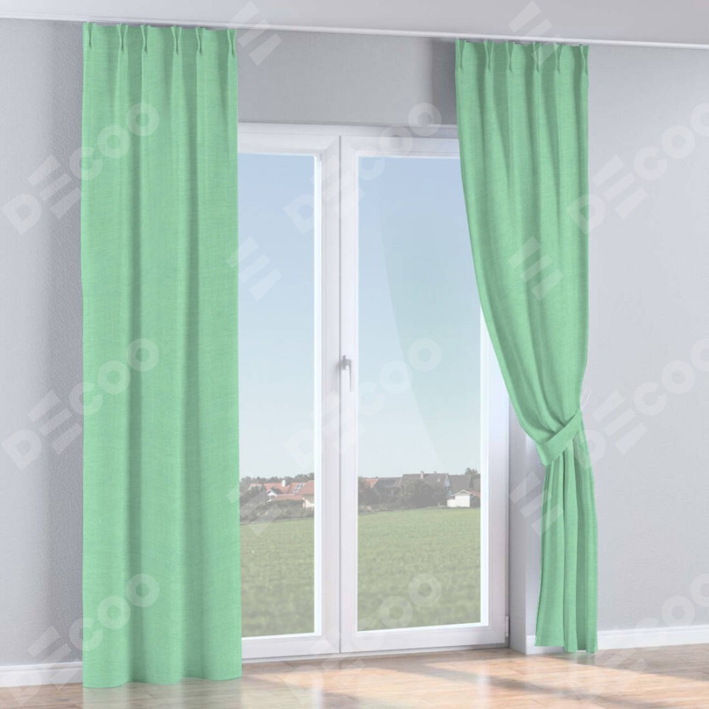 Комплект прямых штор, от производителя «Cortin», пошиты из ткани лён светло-бирюзовый, артикул ткани 74737. С изнаночной стороны в верхней части штор пристрачивается шторная лента с декоративными складками «Кустик». Для создания элегантных складок прямые шторы шьются по стандарту с коэффициентом 1:2 (на 100 см. ширины проёма 200 см. ширины ткани).