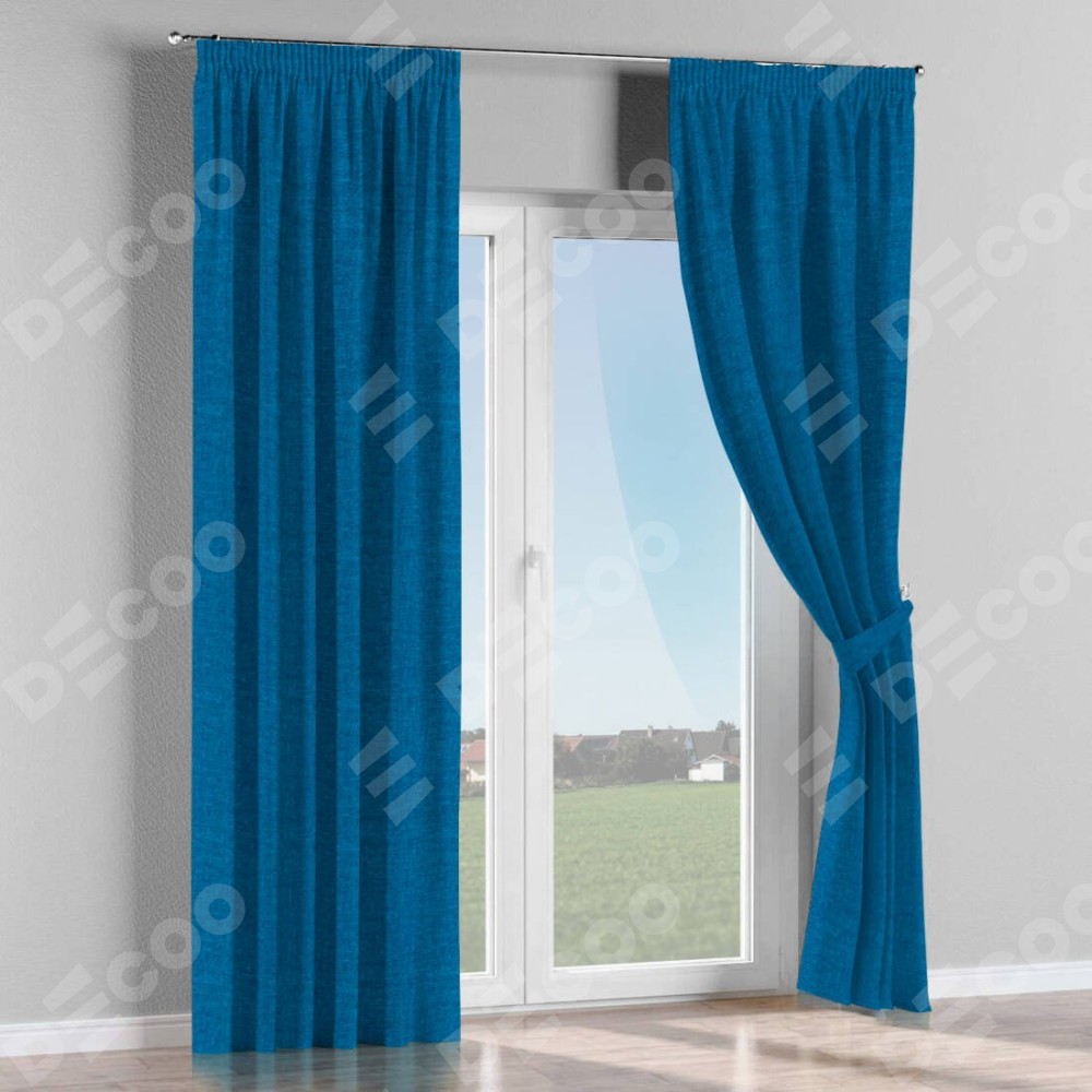 Комплект прямых штор, от производителя «Cortin», пошиты из ткани лён синий, артикул ткани 63742. С изнаночной стороны в верхней части штор пристрачивается шторная лента с декоративными складками «Карандаш». Для создания элегантных складок прямые шторы шьются по стандарту с коэффициентом 1:2 (на 100 см. ширины проёма 200 см. ширины ткани).