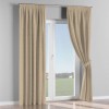 Комплект прямых штор, от производителя «Cortin», пошиты из ткани лён кашемир бежевый, артикул ткани 17206. С изнаночной стороны в верхней части штор пристрачивается шторная лента с декоративными складками «Карандаш». Для создания элегантных складок прямые шторы шьются по стандарту с коэффициентом 1:2 (на 100 см. ширины проёма 200 см. ширины ткани).