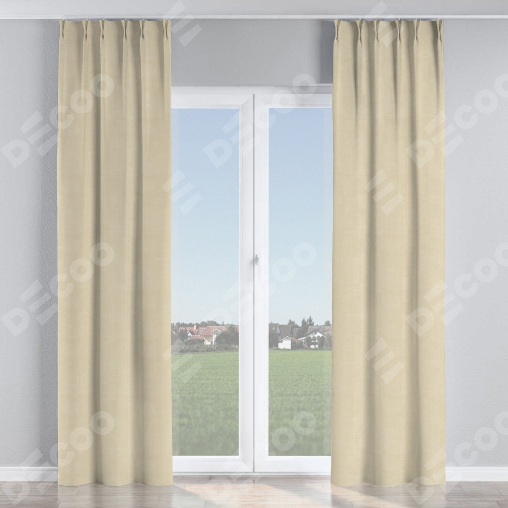 Комплект прямых штор, от производителя «Cortin», пошиты из ткани лён кашемир шампань, артикул ткани 17205. С изнаночной стороны в верхней части штор пристрачивается шторная лента с декоративными складками «Кустик». Для создания элегантных складок прямые шторы шьются по стандарту с коэффициентом 1:2 (на 100 см. ширины проёма 200 см. ширины ткани).