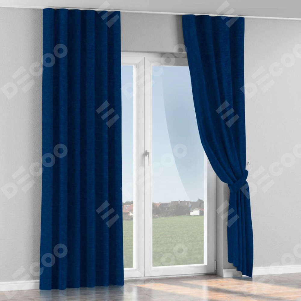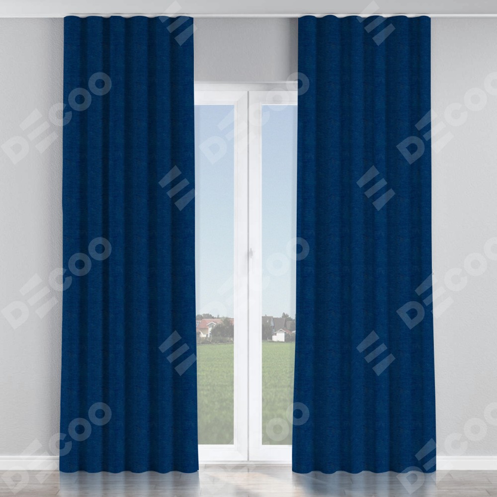 Комплект прямых штор, от производителя «Cortin», пошиты из ткани софт однотонный синий, артикул ткани 42937. С изнаночной стороны в верхней части штор пристрачивается шторная лента с декоративными складками «Волна». Для создания элегантных складок прямые шторы шьются по стандарту с коэффициентом 1:2 (на 100 см. ширины проёма 200 см. ширины ткани).