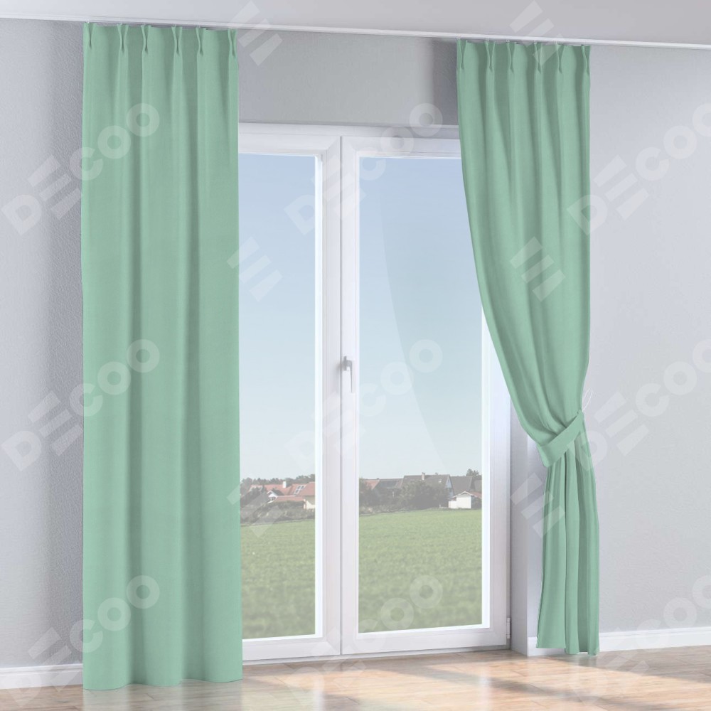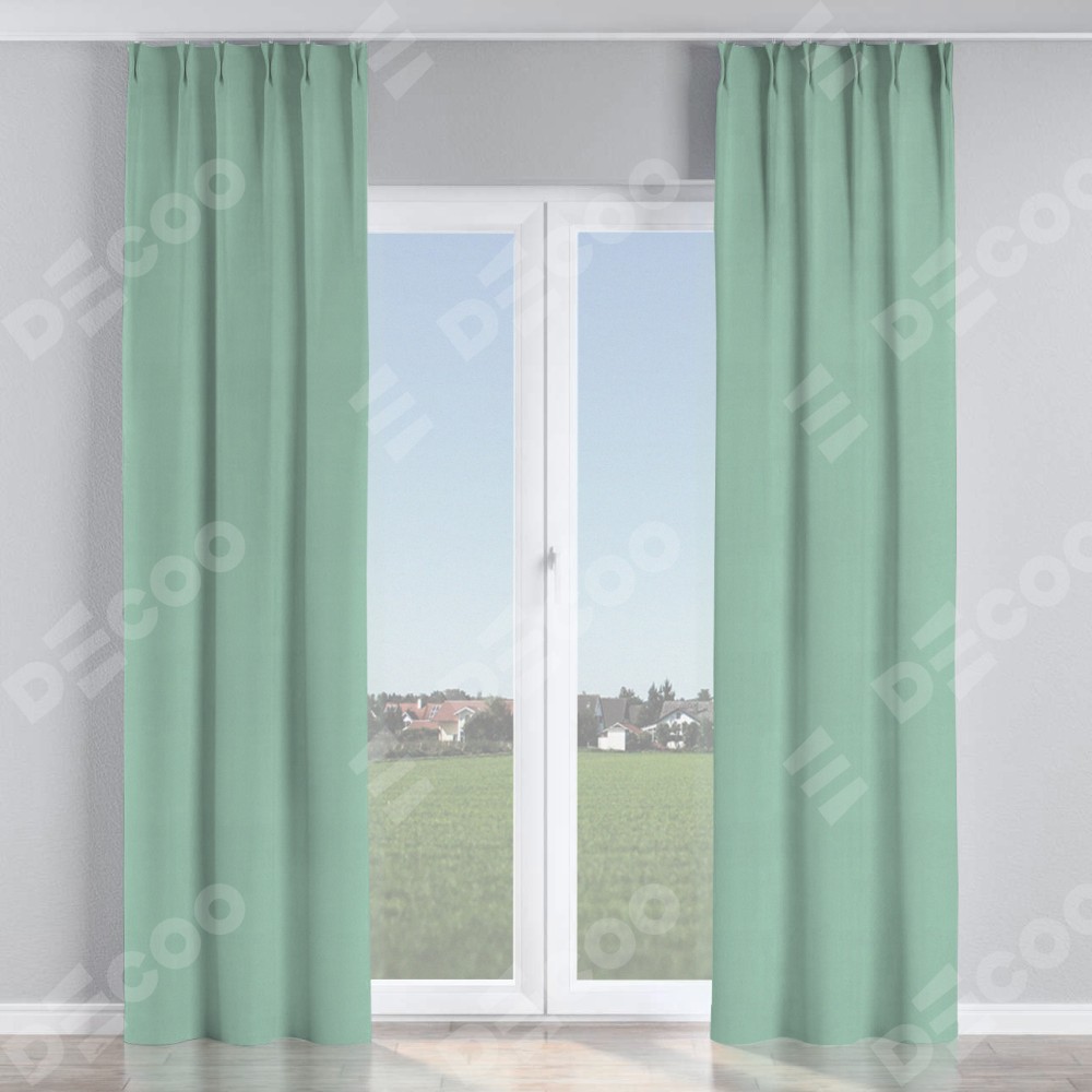 Комплект прямых штор, от производителя «Cortin», пошиты из ткани блэкаут однотонный ментоловый, артикул ткани 29584. С изнаночной стороны в верхней части штор пристрачивается шторная лента с декоративными складками «Кустик». Для создания элегантных складок прямые шторы шьются по стандарту с коэффициентом 1:2 (на 100 см. ширины проёма 200 см. ширины ткани).