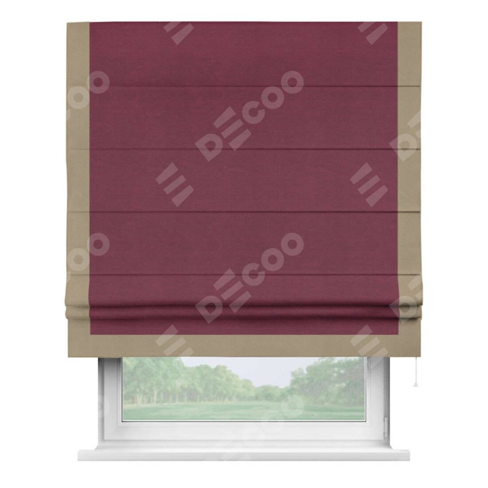 Римская штора «Кортин» с кантом Виктория, для проема, ткань вельвет бордовый
