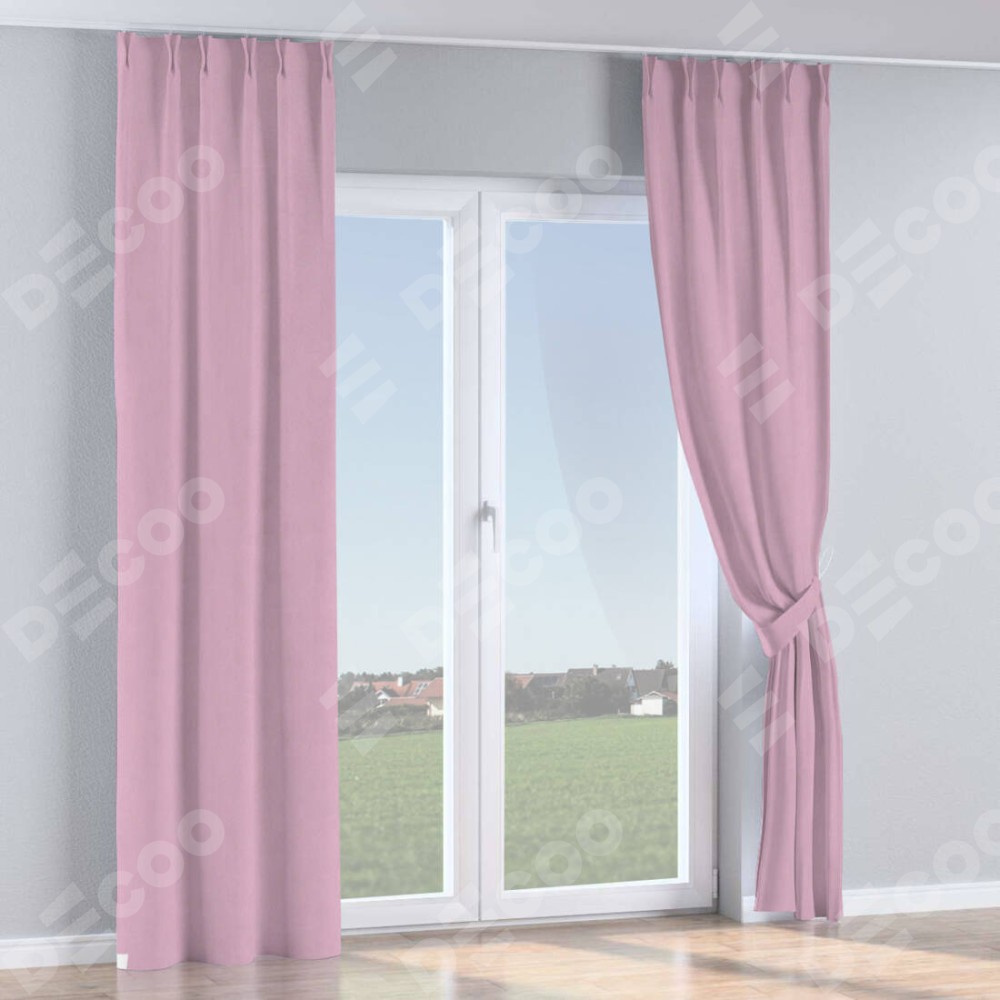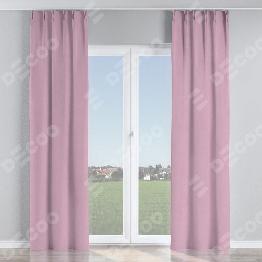 Комплект прямых штор, от производителя «Cortin», пошиты из ткани pipa блэкаут розовый, артикул ткани 12091. С изнаночной стороны в верхней части штор пристрачивается шторная лента с декоративными складками «Кустик». Для создания элегантных складок прямые шторы шьются по стандарту с коэффициентом 1:2 (на 100 см. ширины проёма 200 см. ширины ткани).