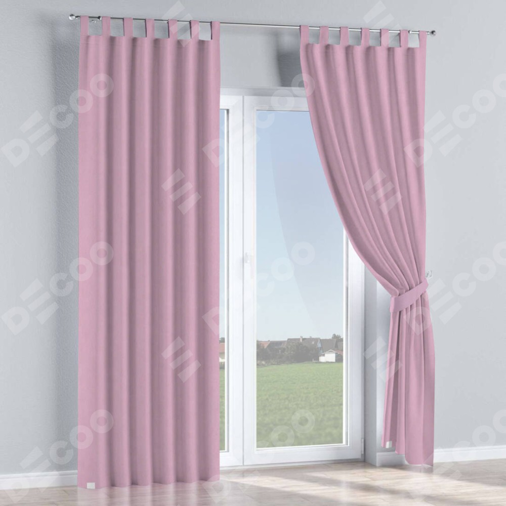 Комплект прямых штор, от производителя «Cortin», пошиты из ткани pipa блэкаут розовый, артикул ткани 12091. Данная модель пошита на петлях, комплектуется на выбор круглым карнизом и подходит для монтажа на стену или потолок. Прямые шторы на петлях шьются по стандарту с коэффициентом 1/2 (на 100 см. ширины проёма 200 см. ширины ткани), отличительным преимуществом данной модели является простой способ монтажа. Достаточно повесить ее на трубу и штора готова!