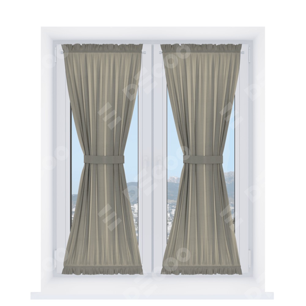 Штора «Песочные часы» производителя «Cortin», используется для створок окон и дверей, пошита из ткани блэкаут однотонный бежево-серый, артикул ткани 00004.