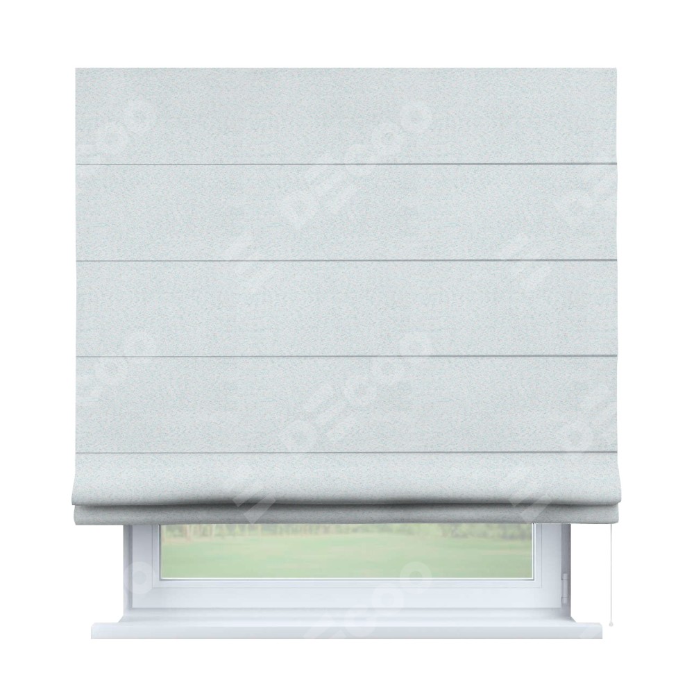 Римская штора производителя «Cortin», используется для проёма, пошита из ткани блэкаут однотонный дымчато-белый, артикул ткани 101. Имеет универсальный механизм и подходит для монтажа: на потолок, на стену и в нишу.