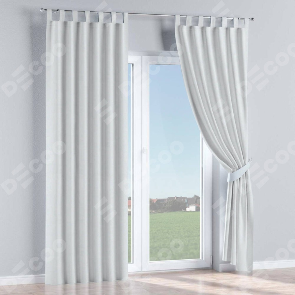 Комплект прямых штор, от производителя «Cortin», пошиты из ткани блэкаут однотонный дымчато-белый, артикул ткани 101. Данная модель пошита на петлях, комплектуется на выбор круглым карнизом и подходит для монтажа на стену или потолок. Прямые шторы на петлях шьются по стандарту с коэффициентом 1/2 (на 100 см. ширины проёма 200 см. ширины ткани), отличительным преимуществом данной модели является простой способ монтажа. Достаточно повесить ее на трубу и штора готова!