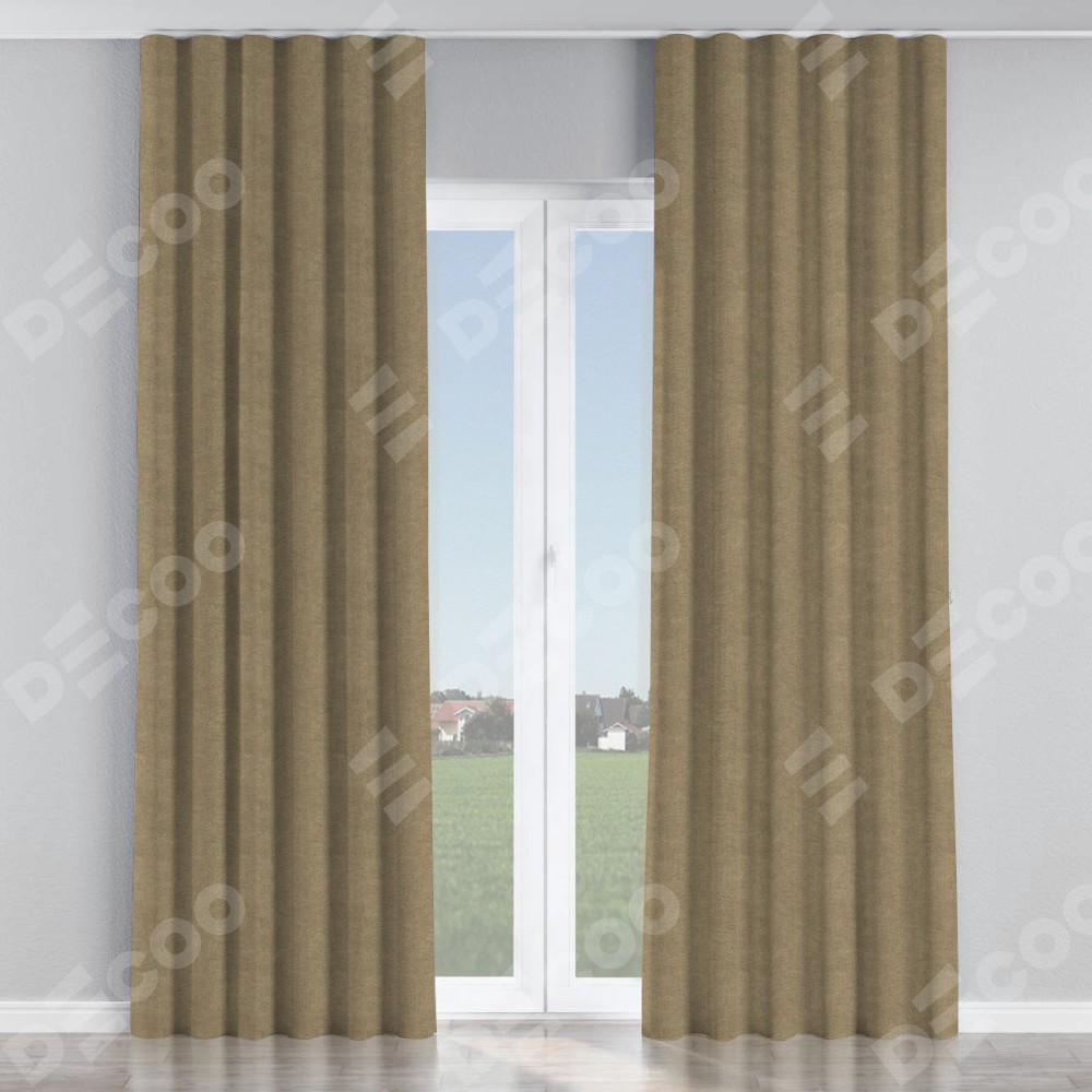Комплект прямых штор, от производителя «Cortin», пошиты из ткани cotton блэкаут бежевый, артикул ткани 35315. С изнаночной стороны в верхней части штор пристрачивается шторная лента с декоративными складками «Волна». Для создания элегантных складок прямые шторы шьются по стандарту с коэффициентом 1:2 (на 100 см. ширины проёма 200 см. ширины ткани).
