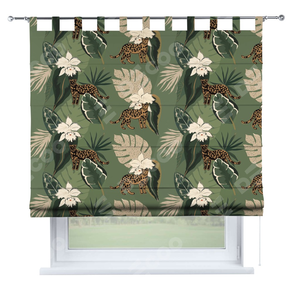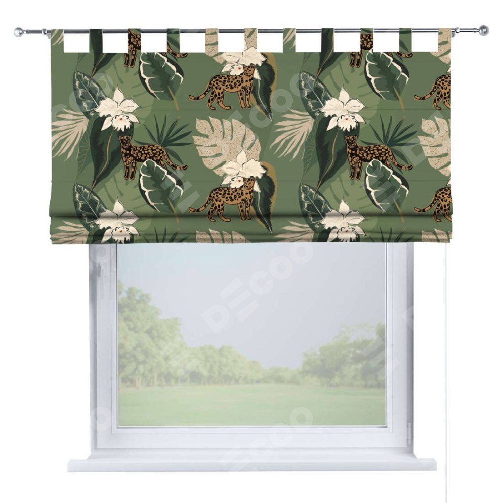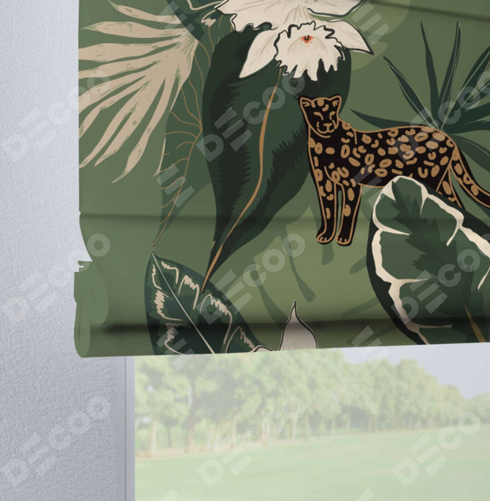 Римская штора производителя «Cortin», используется для проёма, пошита из ткани блэкаут с нанесением сублимационной печати «В тропическом лесу». Данная модель пошита на петлях, комплектуется на выбор круглым карнизом и подходит для монтажа на стену. Римская штора на петлях имеет простую систему регулировки высоты, отличительным преимуществом данной модели является простой способ монтажа. Достаточно повесить ее на трубу и штора готова!