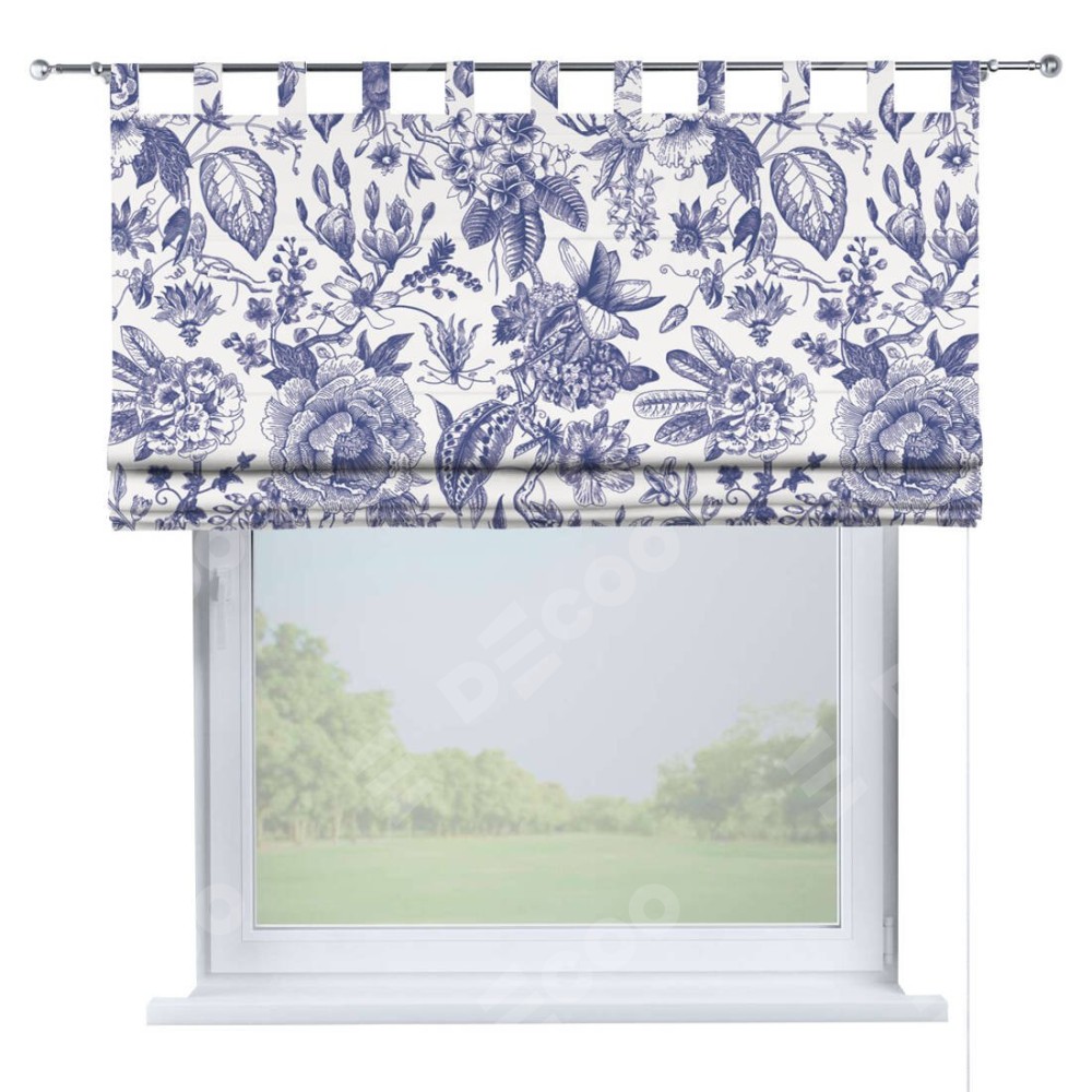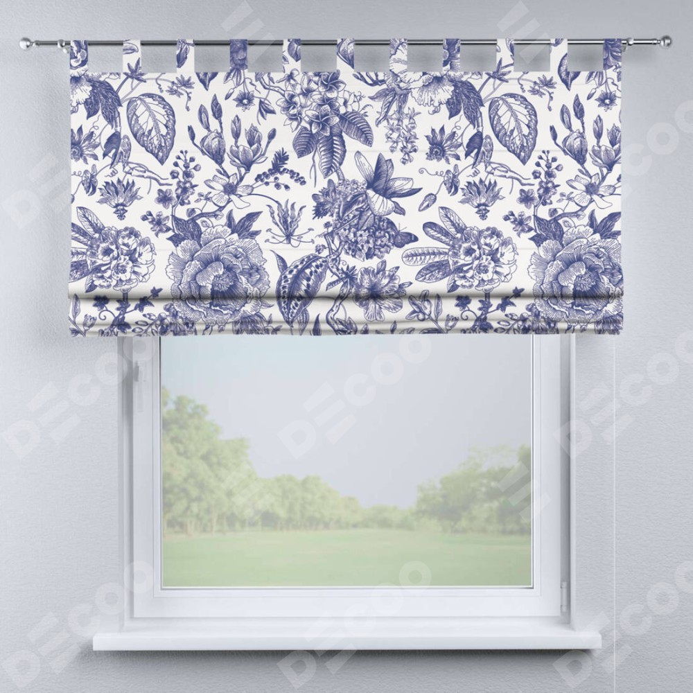 Римская штора производителя «Cortin», используется для проёма, пошита из ткани блэкаут с нанесением сублимационной печати «Прованс в синем». Данная модель пошита на петлях, комплектуется на выбор круглым карнизом и подходит для монтажа на стену. Римская штора на петлях имеет простую систему регулировки высоты, отличительным преимуществом данной модели является простой способ монтажа. Достаточно повесить ее на трубу и штора готова!