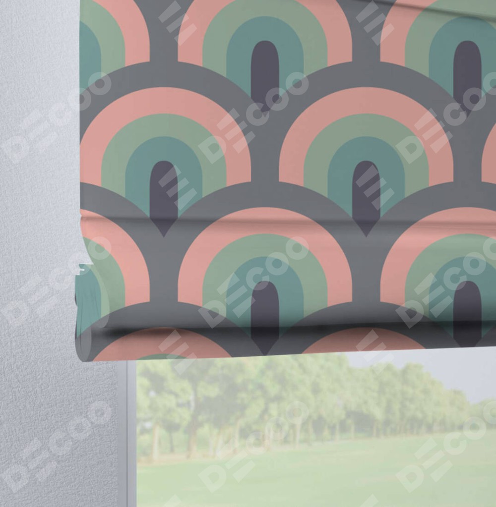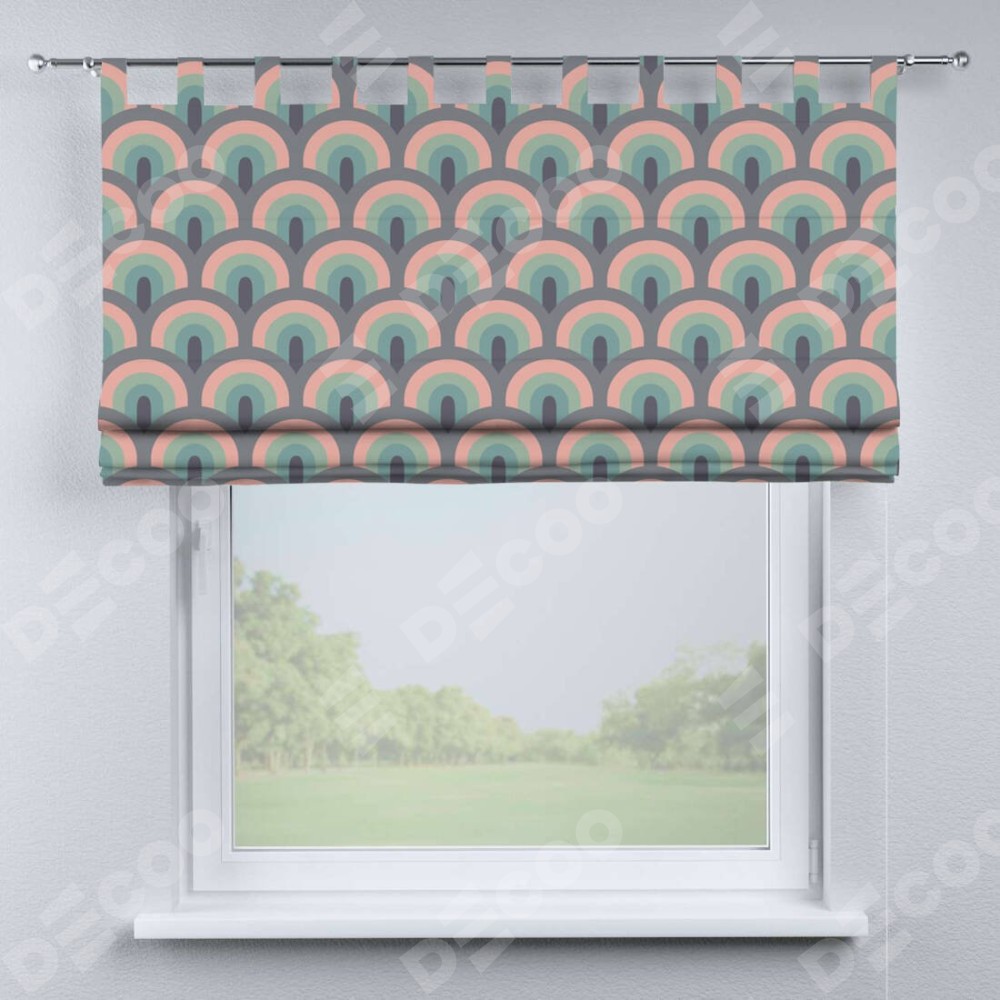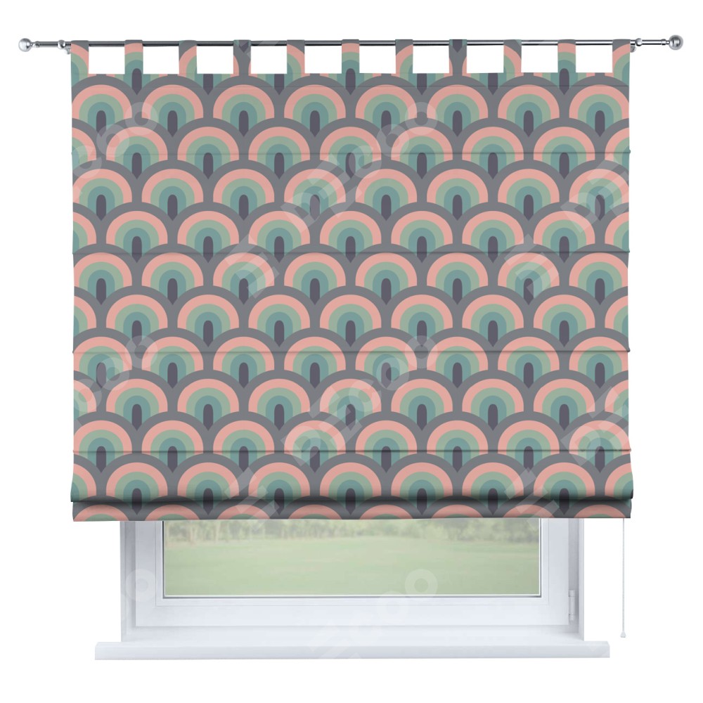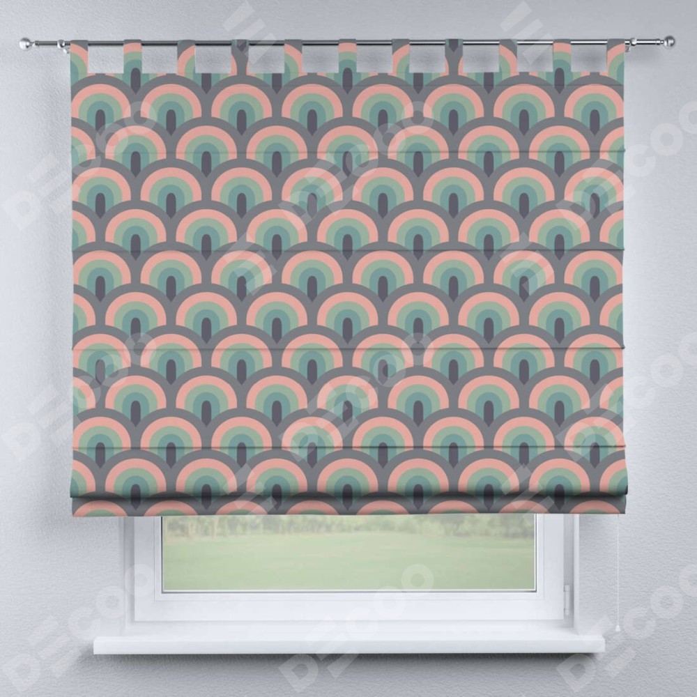 Римская штора производителя «Cortin», используется для проёма, пошита из ткани блэкаут с нанесением сублимационной печати «Ретро орнамент». Данная модель пошита на петлях, комплектуется на выбор круглым карнизом и подходит для монтажа на стену. Римская штора на петлях имеет простую систему регулировки высоты, отличительным преимуществом данной модели является простой способ монтажа. Достаточно повесить ее на трубу и штора готова!