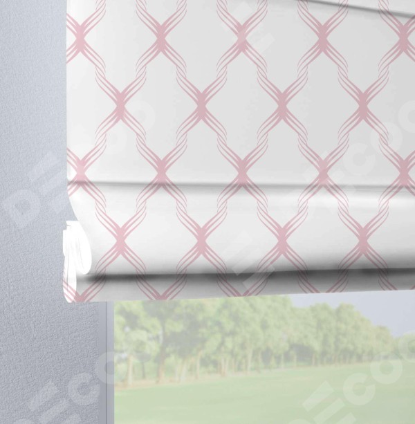 Римская штора производителя «Cortin», используется для проёма, пошита из ткани блэкаут с нанесением сублимационной печати «Розовые ромбы». Данная модель пошита на петлях, комплектуется на выбор круглым карнизом и подходит для монтажа на стену. Римская штора на петлях имеет простую систему регулировки высоты, отличительным преимуществом данной модели является простой способ монтажа. Достаточно повесить ее на трубу и штора готова!