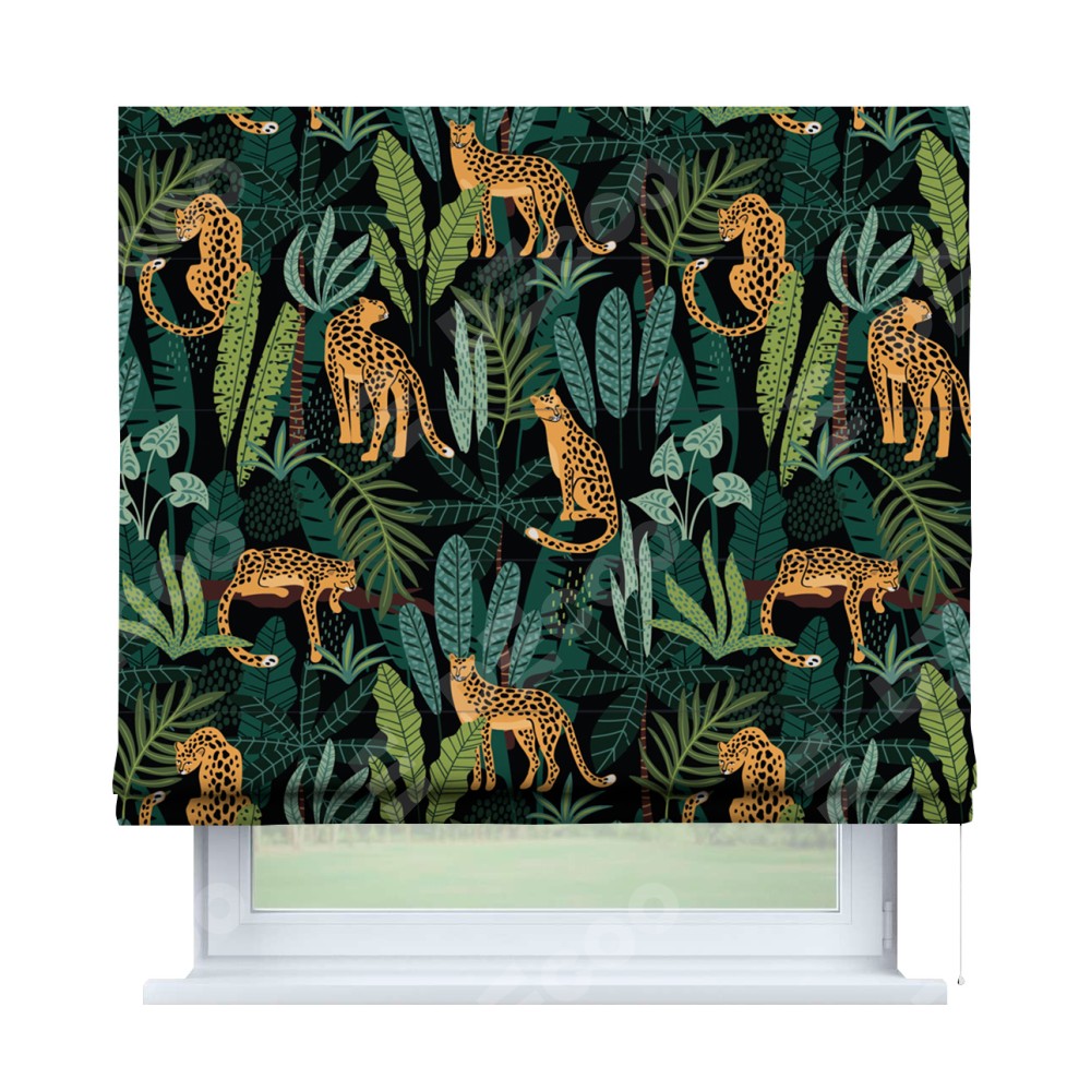 Римская штора «Кортин» для проема «Леопарды в джунглях»