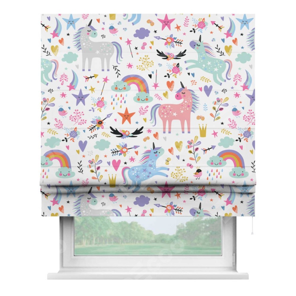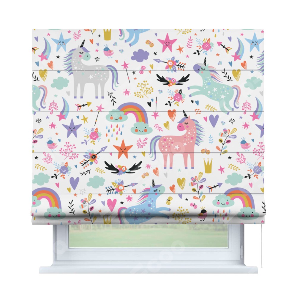 Римская штора «Кортин» для проема «Радужные единороги»